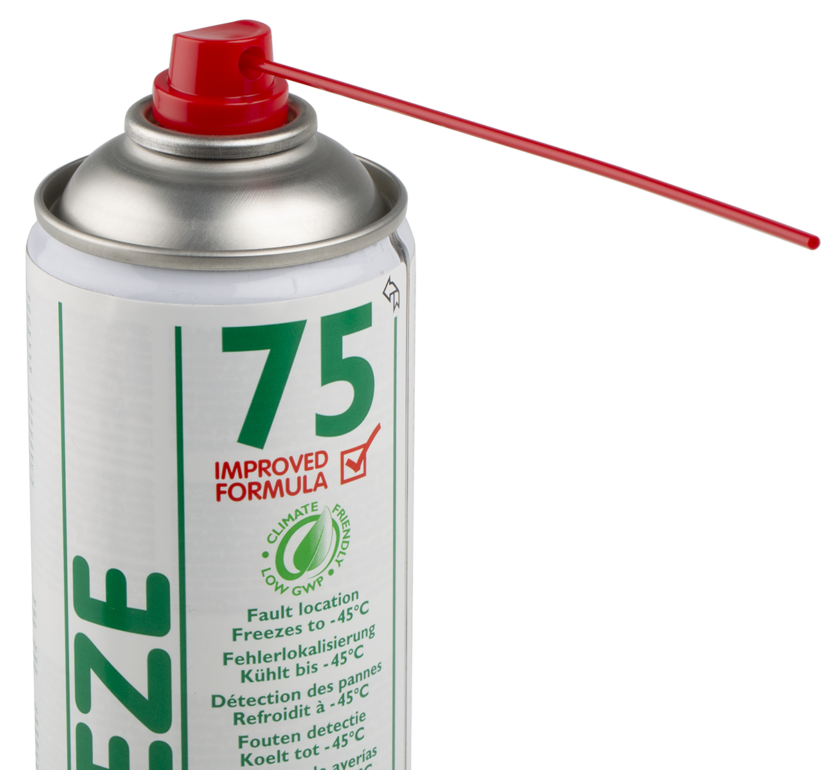 This is 400 ml Aerosol Freeze Spray -45°C manufactured by Kontakt Chemie. The manufacturer part number is 33169. It is assigned with a trade name of freeze 75. It has a standard freezer temperature of -45°c . Applications Information involves inert dry coolant spray with low global warming potential (gwp), reduction in temperature to -45°c. The package is a sort of aerosol. Its package size is approximately 400 ml .