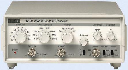 This is Function Generator 20MHz manufactured by Aim-TTi. The manufacturer part number is TG120. It has a maximum 20mhz frequency range square pulse and arbitrary waveform . The given dimensions of the product include 230 x 220 x 82mm. Furthermore, the product is 220mm wide. 0 → 5v is the CMOS output level of the product . Its attenuation is about -20db . It has a maximum 20mhz frequency range sinewave . It has a minimum 0.2hz frequency range sinewave . While it has tg120 of model number. It has a maximum 20mhz frequency range triangle/saw . It has a maximum operating temperature of +40°c. In addition, it has a minimum 0.2hz frequency range triangle/saw . Moreover, it has a 20v pk-pk output amplitude . Whereas, the minimum operating temperature of the product is +5°c. Its accurate length is 230mm. Moreover, it has a minimum 0.2 hz frequency range square pulse and arbitrary waveform . Furthermore, its input impedance equals 82 kω. The typical product's weight is 1.5kg. The TTL output level is 0 → 5v . The plug is a highly reliable type c - european plug, type g - british 3-pin with long service life. Additionally, it has a standard 0.2 hz → 20 mhz frequency range square pulse and arbitrary waveform . In addition, the height is 82mm. The product has an FM modulation feature yes .