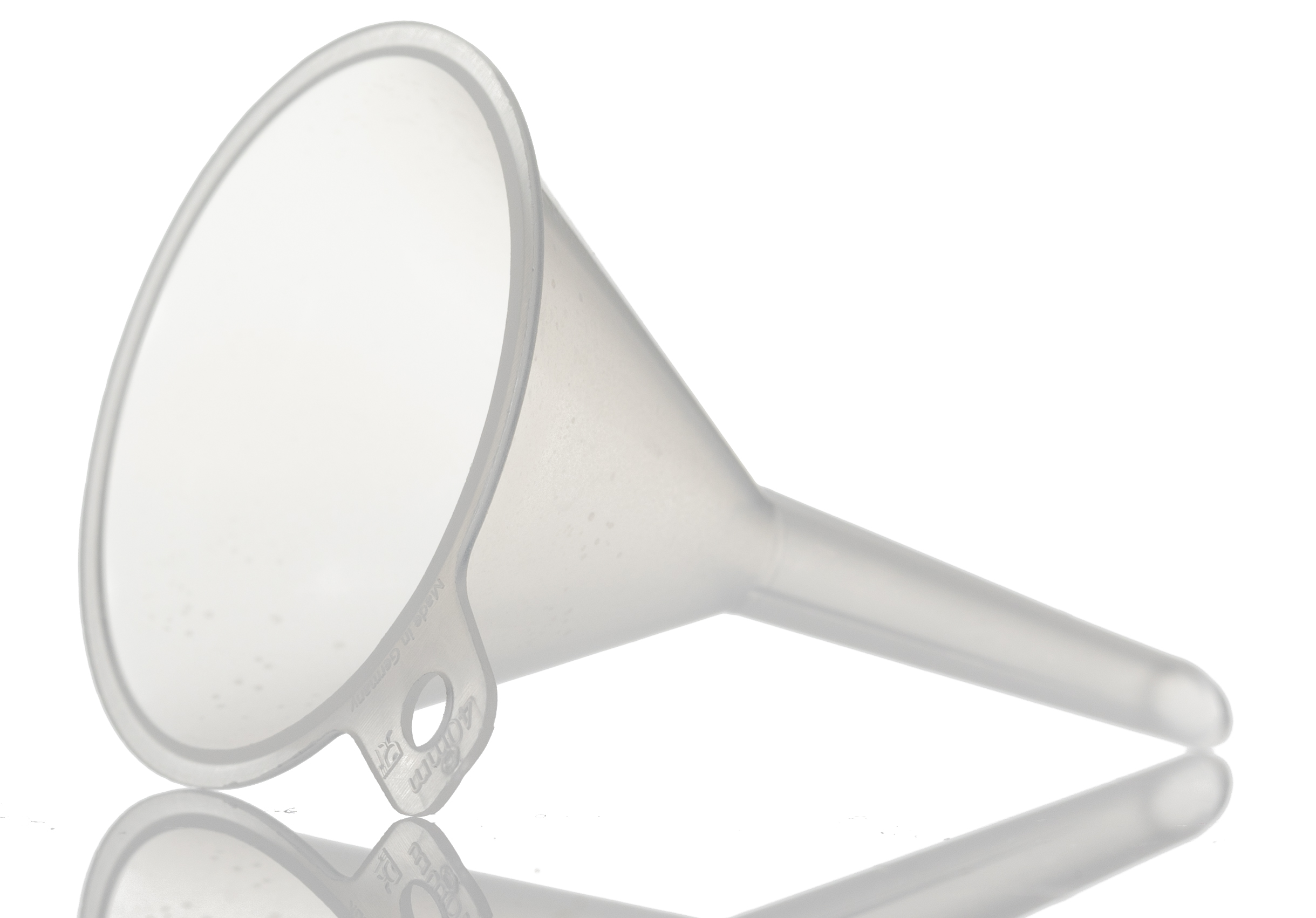 This is PP Funnel With 40mm Funnel Diameter 5mm Stem Diameter manufactured by RS PRO. The manufacturer part number is 201-2422. It stem is approximately 5mm in diameter . It has 40mm funnel diameter . The product is made from highly stable and reliable pp.