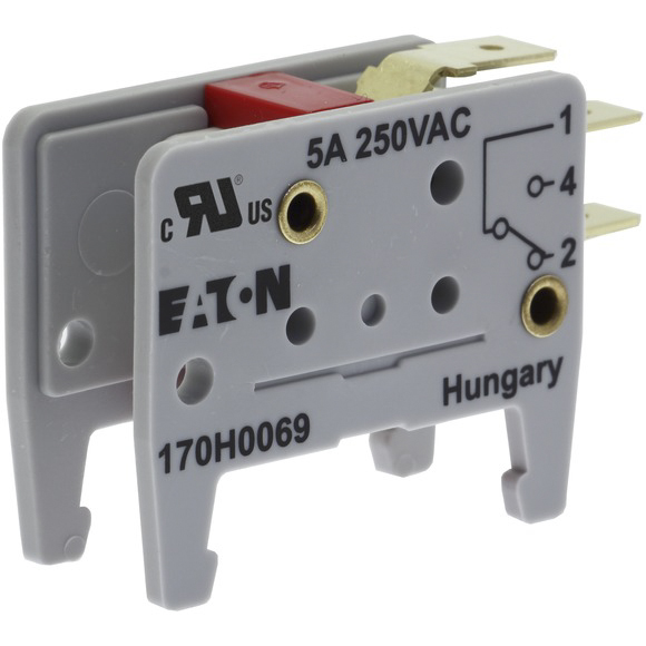 This is Cooper Bussmann Fuse Holder Accessories Microswitch manufactured by Eaton Bussmann Series. The manufacturer part number is 170H0069. Moreover, it has a/an microswitch type fuse holder accessory .