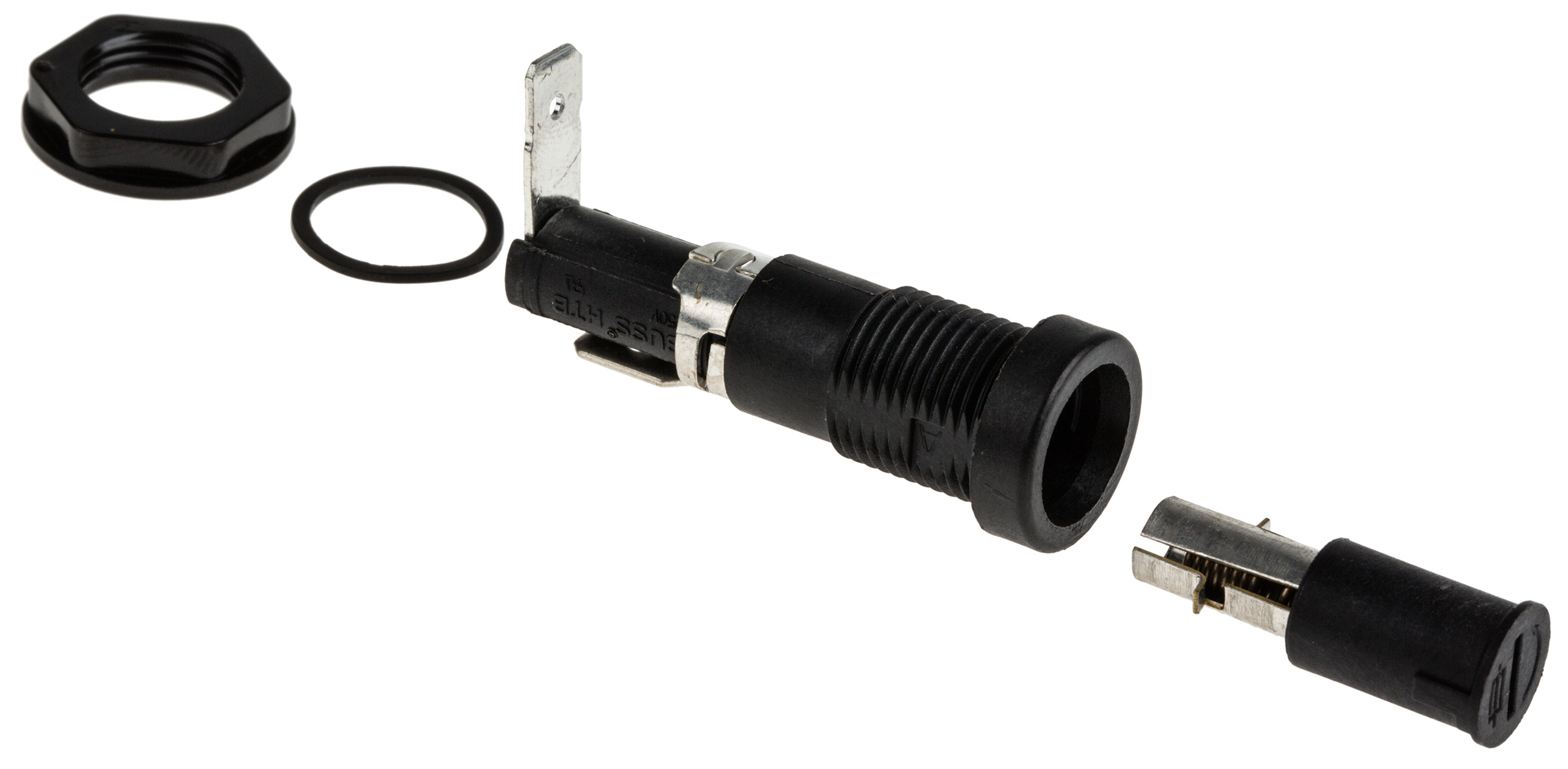 This is manufactured by Eaton. The manufacturer part number is HTB-38M-R. The product has a current rating of 16a. The product complies with all safety standards, such as ce, csa certified, rohs compliant, semko certification, ul recognized, vde certified. It has a slotted style cap . Moreover, the product has a nominal 250v ac voltage rating. Moreover, it has a/an panel mount type fuse holder . Indicator included no . A fuse with a 5 x 20mm size. It has a compatible fuse of 5mm in diameter . It is compatible with 20mm length fuse . It has equipped with 1p poles. The terminal is a quick connect type. The product is made from sturdy tin plated brass materials. It has typical 5 weeks of manufacturer standard lead time. It features fuse holder 16a 250v 1 circuit cartridge panel mount. The product is suitable for use with 5mm x 20mm. The product is available in panel mount configuration. The product htb, is a highly preferred choice for users. A fuse with a 5mm x 20mm size. Moreover, it has quick connect - 0.250" (6.3mm) terminal style. Its typical moisture sensitivity level is 1 (unlimited). holder Fuse holder type. It integrates a cartridge fuse type. It carries a 250v of voltage. It is available in the standard package of 10. It integrates 1 circuits. The eaton's product offers user-desired applications.