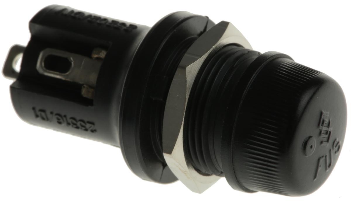 This is OGN Series 6.3A Manual Cap Panel Mount Fuse Holder for 5 x 20mm Fuse IP40 manufactured by Schurter. The manufacturer part number is 7091.1510. The product has a current rating of 6.3a. Indicator included no . It has a manual style cap . Moreover, the product has a nominal 250v ac voltage rating. The product ogn, is a highly preferred choice for users. A fuse with a 5 x 20mm size. It has a compatible fuse of 5mm in diameter . It has a/an black colour gauge piece . Moreover, it has a/an panel mount type fuse holder . It is compatible with 20mm length fuse . Its international protection rating is ip40 . It has equipped with 1p poles. The terminal is a solder type.