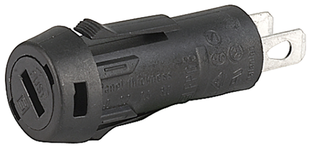 This is FPG3 Series 10 (VDE) A 16 (UL/CSA) A Slotted Cap Panel Mount Fuse Holder for mini Fuse PC2 manufactured by Schurter. The manufacturer part number is 3101.0230. It is compatible with mini size fuses . The product has a current rating of 10 a, 16a. The product complies with all safety standards, such as culus recognised, iec, rohs compliant, vde. It has a slotted style cap . Moreover, the product has a nominal 400v ac voltage rating. The product fpg3, is a highly preferred choice for users. Indicator included no . A fuse with a 5 x 20mm size. It has a pc2 protection category . It has a compatible fuse of 5mm in diameter . It has a/an black colour gauge piece . Moreover, it has a/an panel mount type fuse holder . It is compatible with 20mm length fuse . Its international protection rating is ip40 . It has equipped with 1p poles. The terminal is a quick connect type. The product is made from sturdy tin plated copper alloy materials.