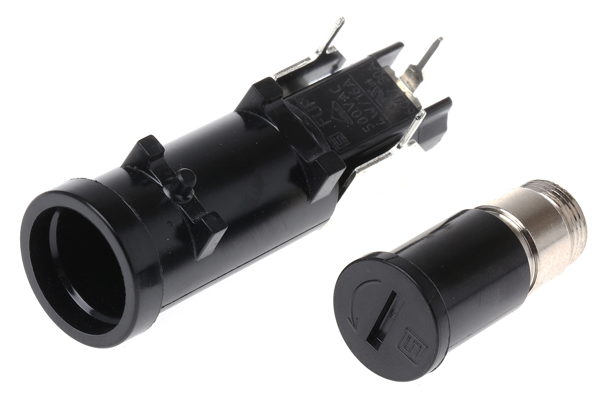 This is 16A Slotted Cap PCB Mount Fuse Holder for 6.3 x 32mm Cartridge Fuse 500V ac manufactured by Schurter. The manufacturer part number is 0031.2520. The product has a current rating of 16a. Indicator included no . It has a slotted style cap . Moreover, the product has a nominal 500v ac voltage rating. Moreover, it has a/an pcb mount type fuse holder . A fuse with a 6.3 x 32mm size. It has a pc2 protection category . It has a/an black colour gauge piece . Its international protection rating is ip40 . The terminal is a solder type. The product is made from sturdy tin plated copper alloy materials.