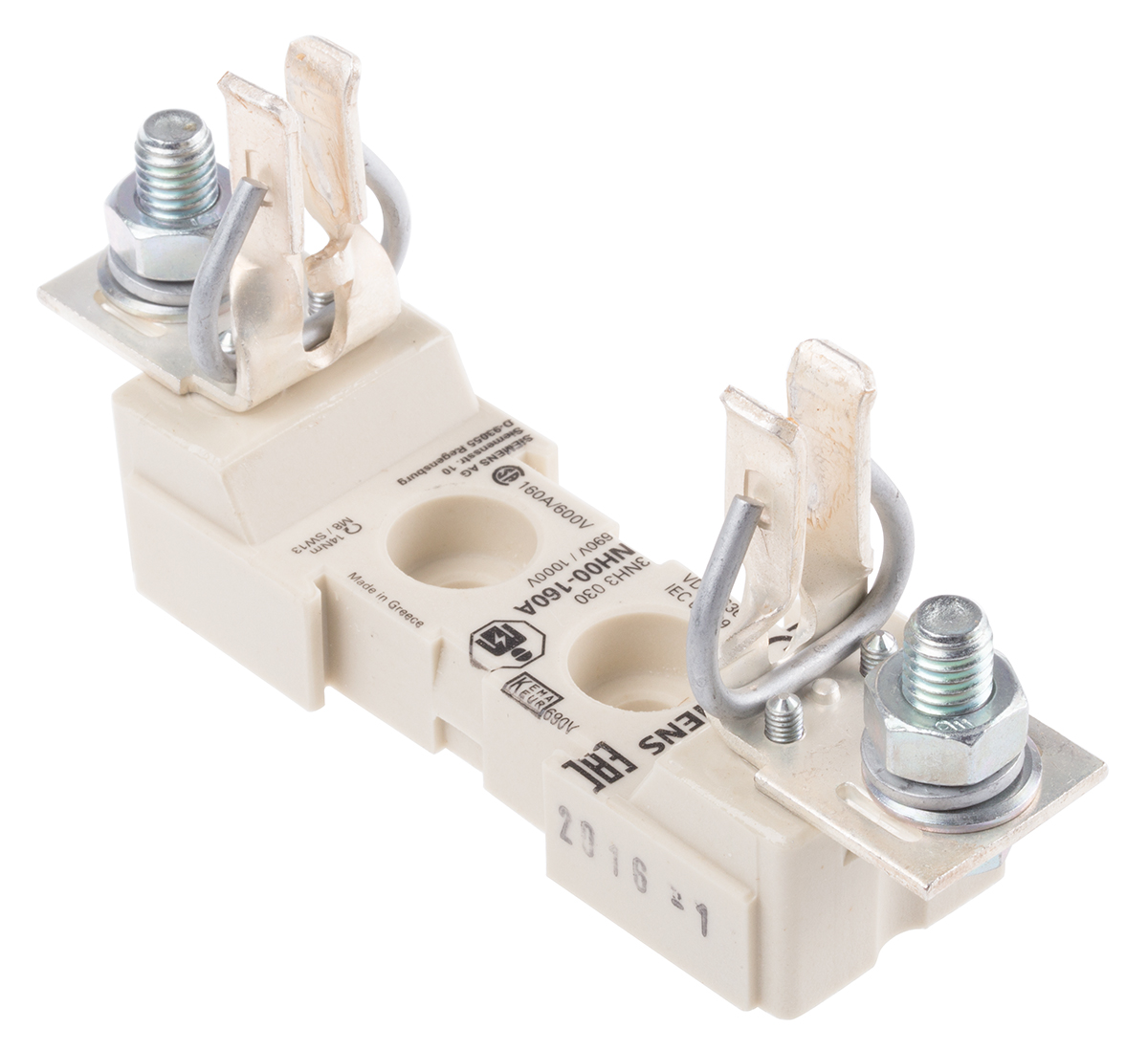 This is 160A Rail Mount Fuse Holder for 00 Fuse 690V ac manufactured by Siemens. The manufacturer part number is 3NH3030. It is compatible with 00 size fuses . The product has a current rating of 160a. Additionally, it has a base bottle fuse holder component . Indicator included no . Moreover, the product has a nominal 690v ac voltage rating. It has din 35 mm type rail . A fuse with a 00 size. The casing is constructed from highly stable ceramic material. Moreover, it has a/an rail mount type fuse holder . It has equipped with 1p poles. The terminal is a pad-type type.