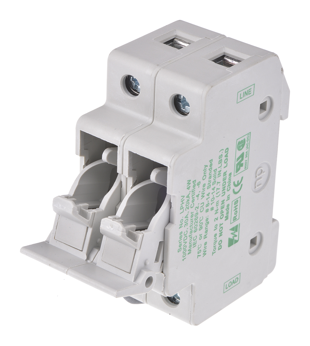 This is 30A Rail Mount Fuse Holder for 10 x 38 mm Fuse 1000V dc manufactured by Littelfuse. The manufacturer part number is LPHV0002Z. It is compatible with 10 x 38 mm size fuses . The product has a current rating of 30a. Indicator included no . Moreover, the product has a nominal 1kv voltage rating. It has din 35 mm type rail . A fuse with a 10 x 38mm size. The casing is constructed from highly stable thermoplastic material. Moreover, it has a/an rail mount type fuse holder . It has equipped with 2p poles.