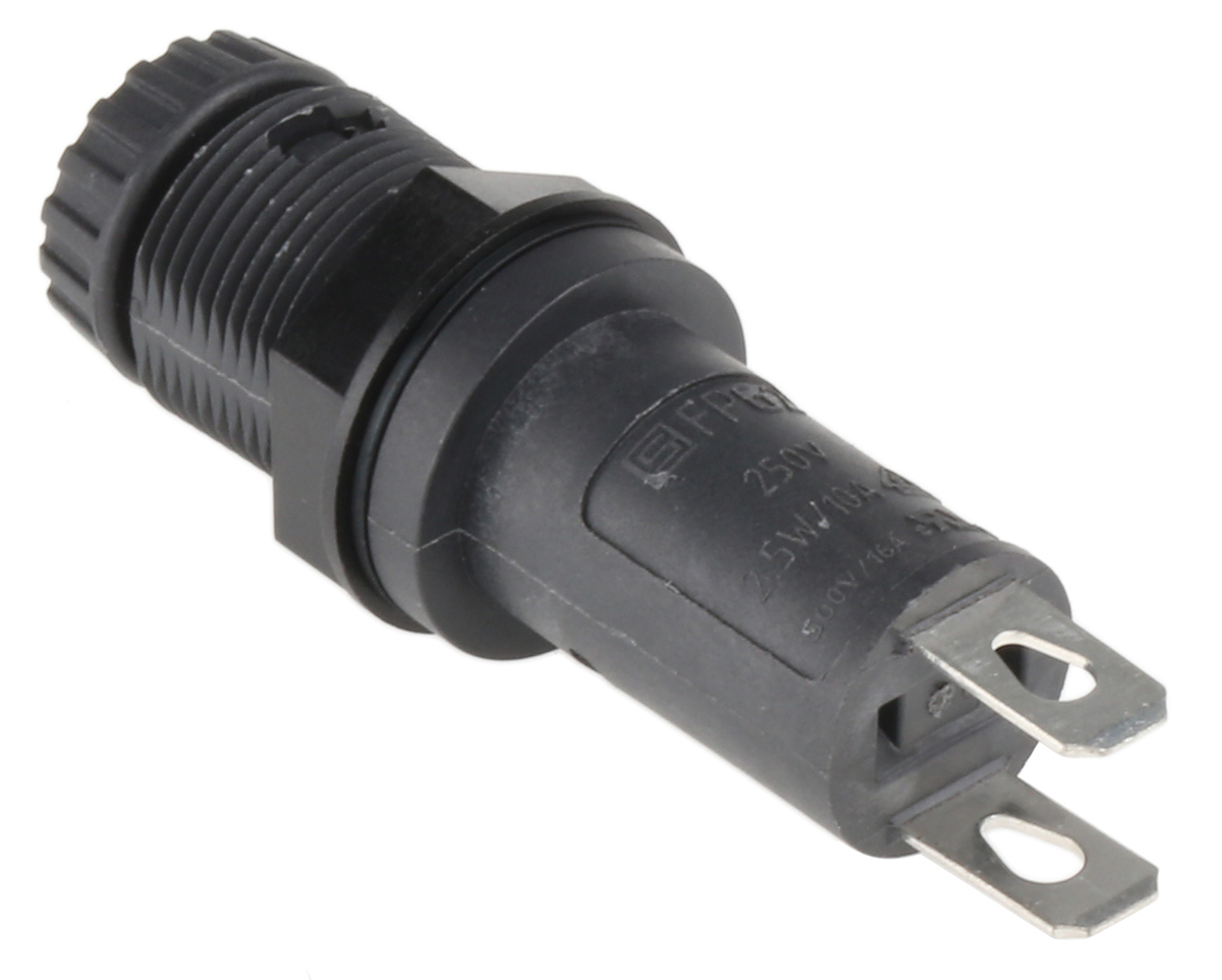 This is FPG2 Series 16A Manual Cap Panel Mount Fuse Holder for 5 x 20mm Fuse PC2 IP67 manufactured by Schurter. The manufacturer part number is 3101.0125. The product has a current rating of 16a. Indicator included no . It has a manual style cap . Moreover, the product has a nominal 250v ac voltage rating. The product fpg2, is a highly preferred choice for users. A fuse with a 5 x 20mm size. It has a pc2 protection category . It has a compatible fuse of 5mm in diameter . It has a/an black colour gauge piece . Moreover, it has a/an panel mount type fuse holder . It is compatible with 20mm length fuse . Its international protection rating is ip67 . It has equipped with 1p poles. The terminal is a solder type. The product is made from sturdy tin plated copper alloy materials.