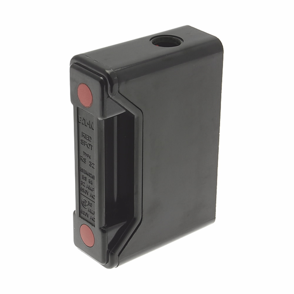 This is Cooper Bussmann 32A Rail Mount Fuse Holder for A2 Fuse 660V ac manufactured by Eaton Bussmann Series. The manufacturer part number is RS32H. It is compatible with a2 size fuses . The product has a current rating of 32a. The product complies with all safety standards, such as iec 60269-2. Moreover, the product has a nominal 690v ac voltage rating. Moreover, it has a/an rail mount type fuse holder . A fuse with a a2 size. It has an anti vibration quality yes . It has a/an white colour gauge piece . Its international protection rating is ip20 . It has equipped with 1 poles. The terminal is a front connected type.