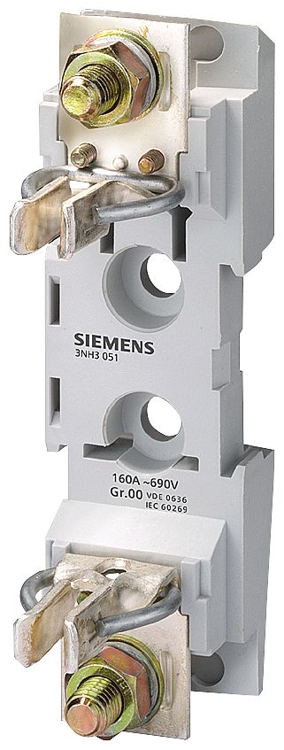 This is 160A Rail Mount Fuse Holder No 1P 690V manufactured by Siemens. The manufacturer part number is 3NH3051. It has equipped with 1p poles. The product has a current rating of 160a. Indicator included no . Moreover, the product has a nominal 690v voltage rating.