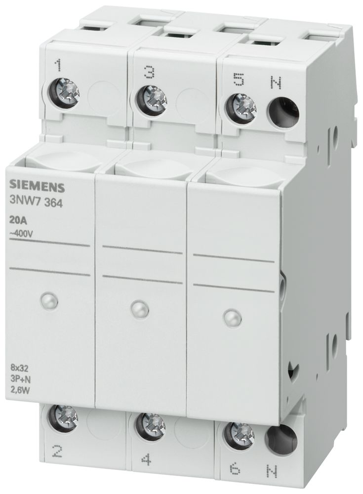 This is 32A Rail Mount Fuse Holder for 10 x 38mm Fuse 3P 690V manufactured by Siemens. The manufacturer part number is 3NW7034. The product has a current rating of 32a. Moreover, the product has a nominal 690v voltage rating. A fuse with a 10 x 38mm size. It features sentron range. It has equipped with 3p poles.