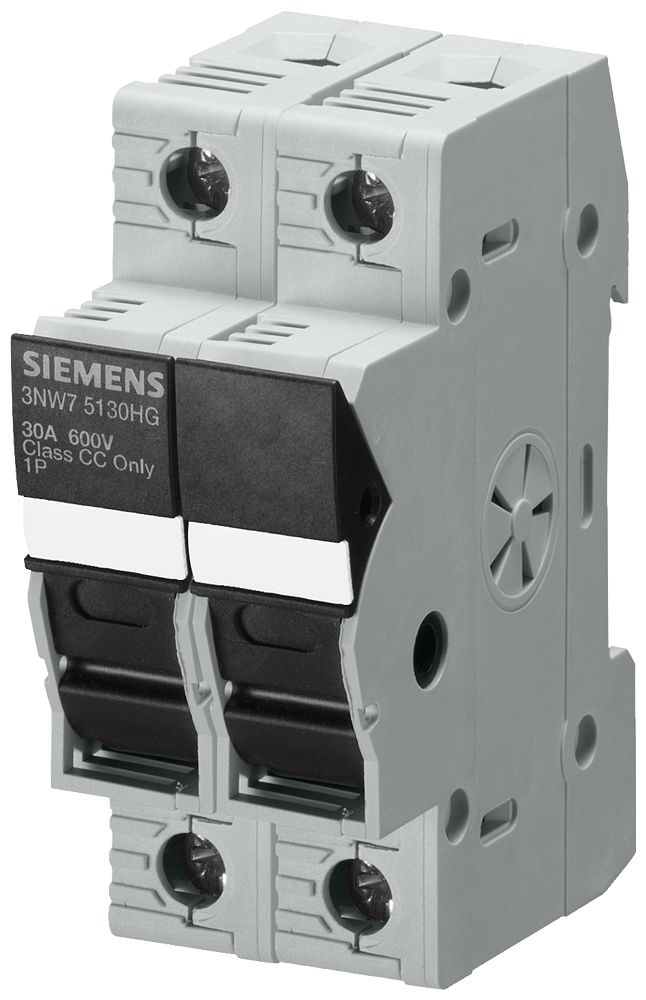 This is 30A Rail Mount Fuse Holder 2P 600V manufactured by Siemens. The manufacturer part number is 3NW7523-0HG. It has equipped with 2p poles. It features sentron range. The product has a current rating of 30a. Moreover, the product has a nominal 600v voltage rating.