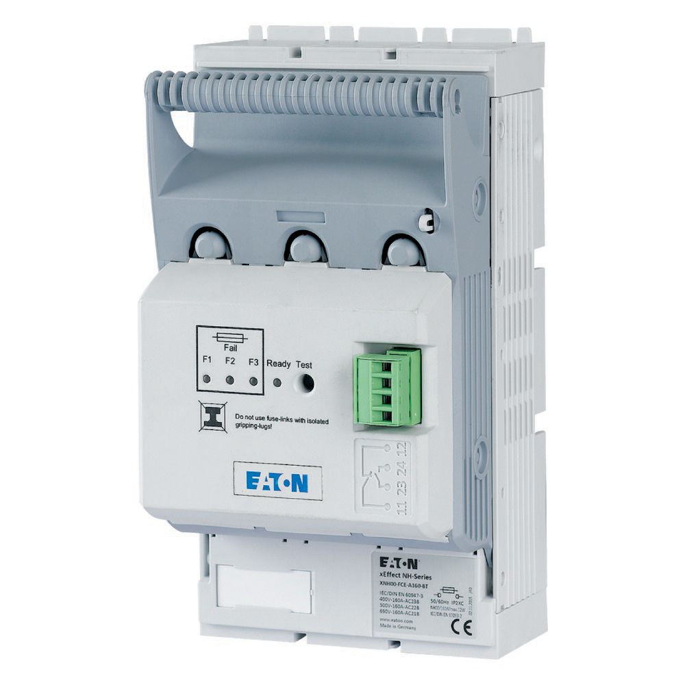 This is 160A Fuse Holder for NH00 NH000 Fuse 3P 440 V ac/dc 690 V ac/dc manufactured by Eaton. The manufacturer part number is 183030 XNH00-FCE-A160-BT. The product has a current rating of 160a. Moreover, the product has a nominal 440 v ac/dc, 690 v ac/dc voltage rating. Moreover, it has a/an mounting plate type fuse holder . A fuse with a nh00, nh000 size. It features eaton xeffect xnh range. It has equipped with 3 poles.