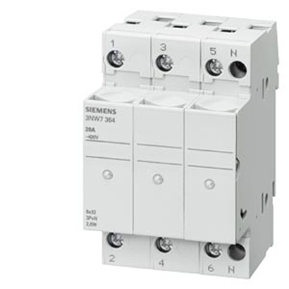 This is 20A Fuse Holder for 8 x 32mm Fuse 3P+N 400V manufactured by Siemens. The manufacturer part number is 3NW7364. The product has a current rating of 20a. Moreover, the product has a nominal 400v voltage rating. Moreover, it has a/an modular fuse holder type fuse holder . A fuse with a 8 x 32mm size. It features sentron range. It has equipped with 3p+n poles.