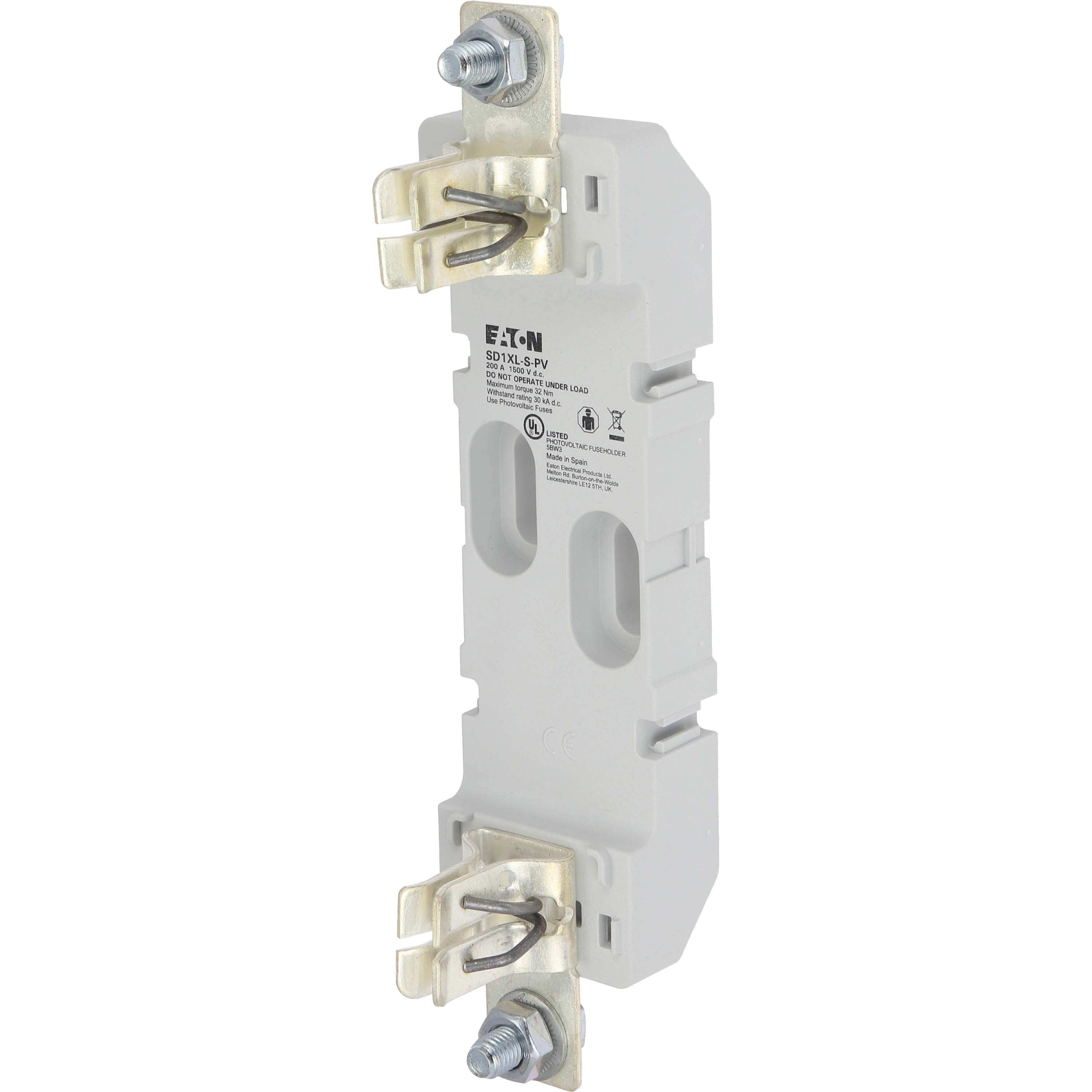 This is Size 1XL PV Fuse Base manufactured by Eaton. The manufacturer part number is SD1XL-S-PV. Is it a better world product? yes. Moreover, the product has a nominal 1.5kv voltage rating. Moreover, it has a/an screw mount type fuse holder . A fuse with a 1xl size. It features bussmann range. The product has a current rating of 250a.