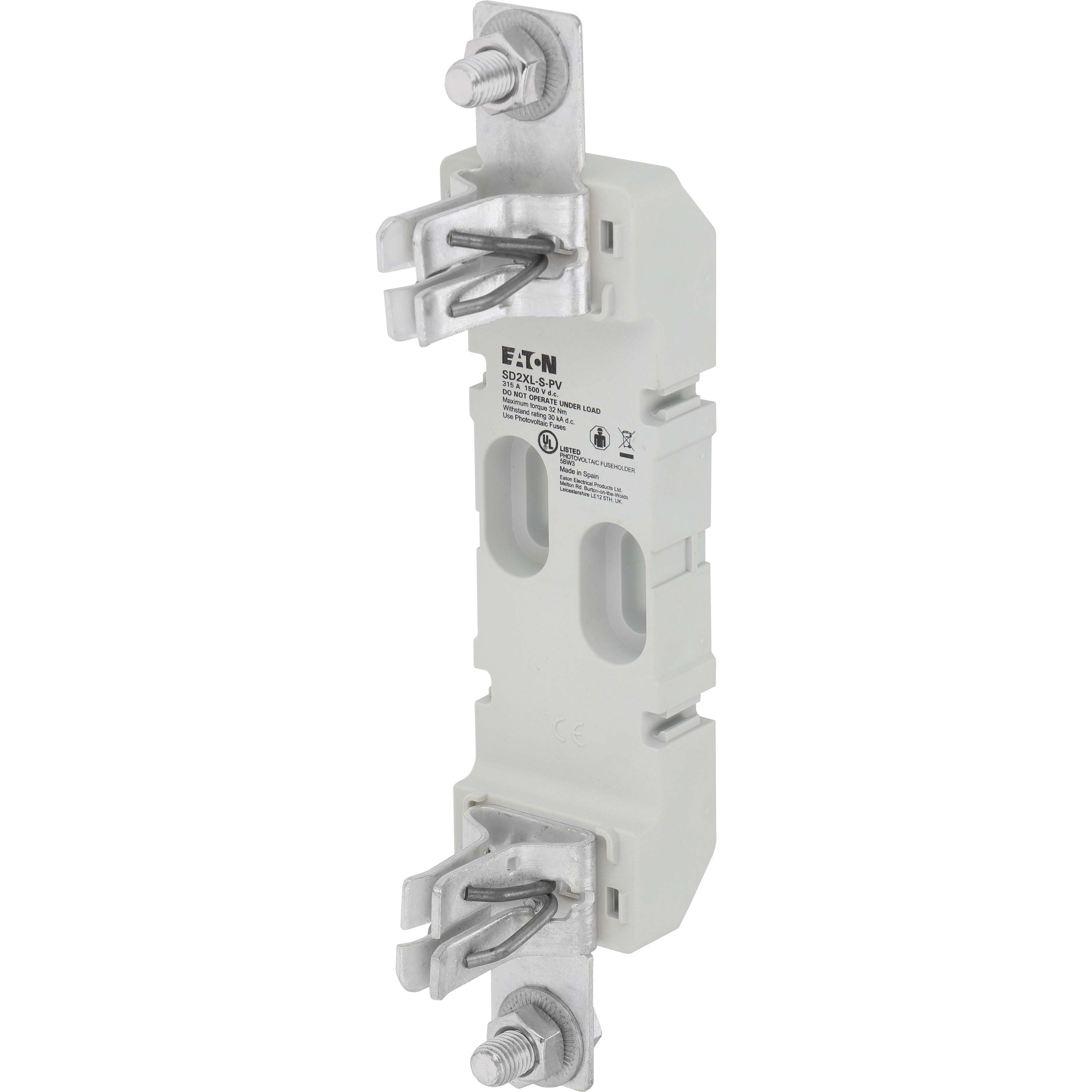 This is Size 2XL PV Fuse Base manufactured by Eaton. The manufacturer part number is SD2XL-S-PV. Is it a better world product? yes. The product has a current rating of 200a. Moreover, the product has a nominal 1.5kv voltage rating. Moreover, it has a/an screw mount type fuse holder . A fuse with a 2xl size. It features bussmann range.