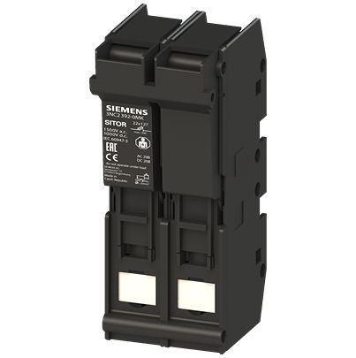 This is 63A Fuse Holder for 22 x 127mm Fuse 2P 1.5kV manufactured by Siemens. The manufacturer part number is 3NC2392-0MK. The product has a current rating of 63a. Moreover, the product has a nominal 1.5kv voltage rating. Moreover, it has a/an screw mount type fuse holder . A fuse with a 22 x 127mm size. It features sitor range. It has equipped with 2 poles.