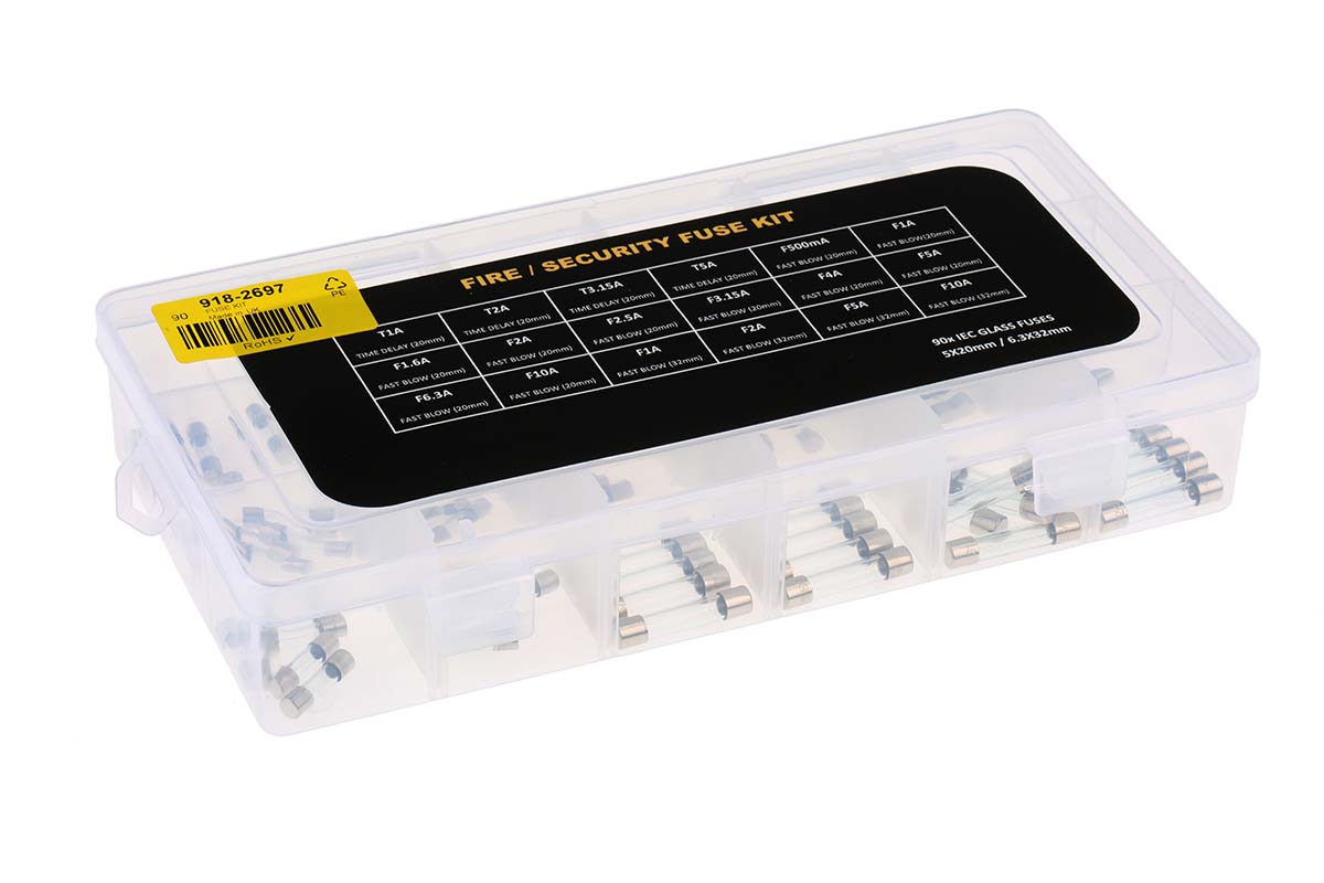 This is Cartridge Fuse Fuse Kit manufactured by RS Pro. The manufacturer part number is 918-2697. It integrates a cartridge fuse fuse type. It includes a/an 20 mm f1.6a, 20 mm f10a, 20 mm f1a, 20 mm f2.5a, 20 mm f2a, 20 mm f3.15a, 20 mm f4a, 20 mm f500ma, 20 mm f5a, 20 mm f6.3a, 20 mm t1a, 20 mm t2a, 20 mm t3.15, 32 mm f10a, 32 mm f1a, 32 mm f2a, 32 mm f5a kit .