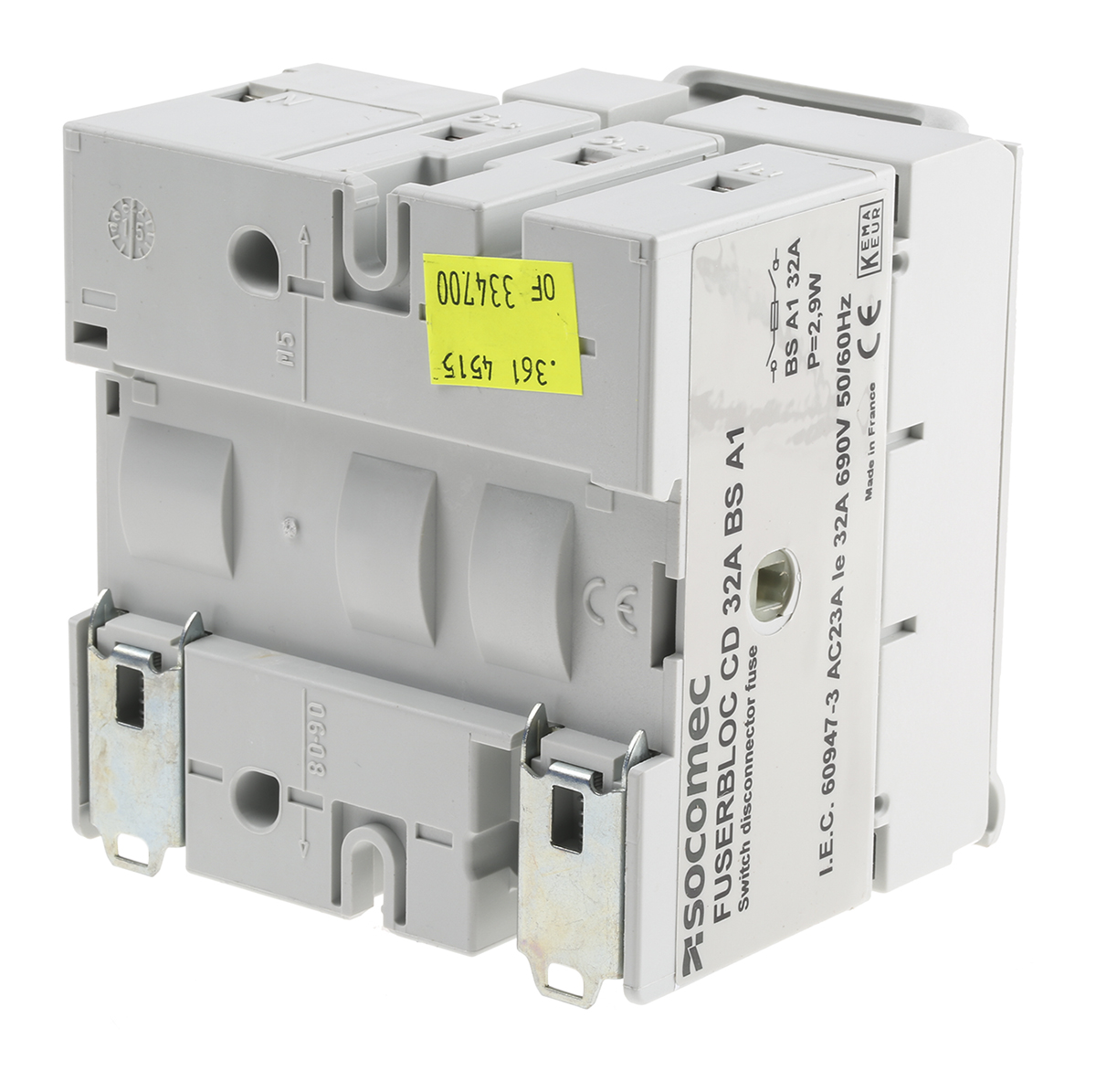 This is 32 A 3P Fused Isolator Switch A1 Fuse Size manufactured by Socomec. The manufacturer part number is 3641 3001. It also carries 32a maximum current. It features fuserbloc range. Its electrical phase configuration includes 3. It has auxiliary available contacts yes . It has equipped with 3 poles. It has a standard a1 mechanical fuse size .