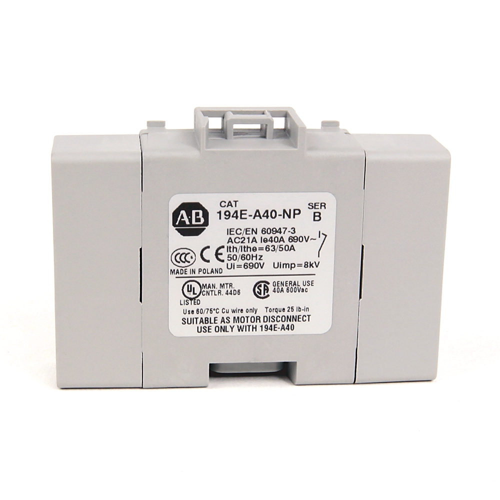 This is Switch Disconnector 3 Pole 100A Max Current 40A Fuse Current manufactured by Allen Bradley. The manufacturer part number is 194E-A40-3753. Its fuse current rating is approximately 40a . It also carries 100a maximum current. The product 194, is a highly preferred choice for users. It features 194e range. The normal state configuration includes 2nc + 1nc/1no. It has equipped with 3 poles. In addition, it has a 3p throw configuration .
