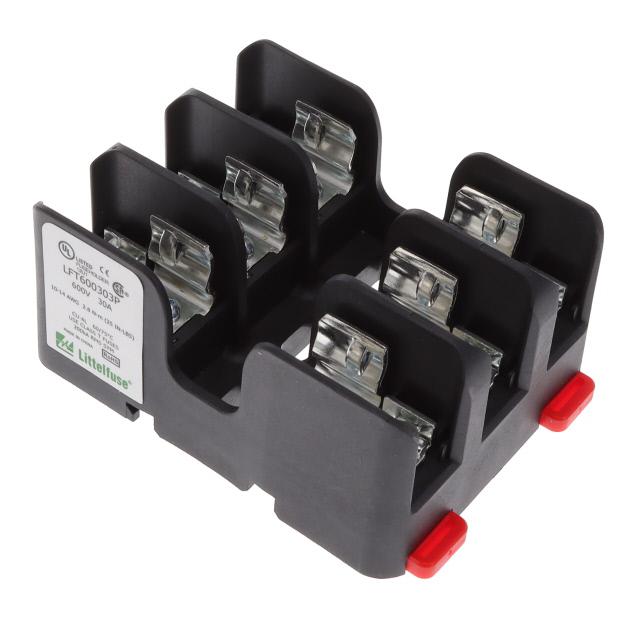 This is manufactured by Littelfuse Inc.. The manufacturer part number is LFT600303P. It is assigned with possible HTSUS value of 8536.90.8585. The product is rohs3 compliant. Moreover, it has screw terminal, pressure plate terminal style. In addition, it is reach unaffected. The product is suitable for use with class t fuses. It is shipped in box package . A fuse with a 0.563" dia x 1.5" l (14.3mm x 38.1mm) size. Its typical moisture sensitivity level is 1 (unlimited). It has a long 13 weeks standard lead time. It integrates 3 circuits. Additionally, the product's output is 30 a. The product is available in din rail configuration. block Fuse holder type. The product lft, is a highly preferred choice for users. It integrates a cartridge fuse type. It carries a 600v of voltage. The product is designated with the ear99 code number.