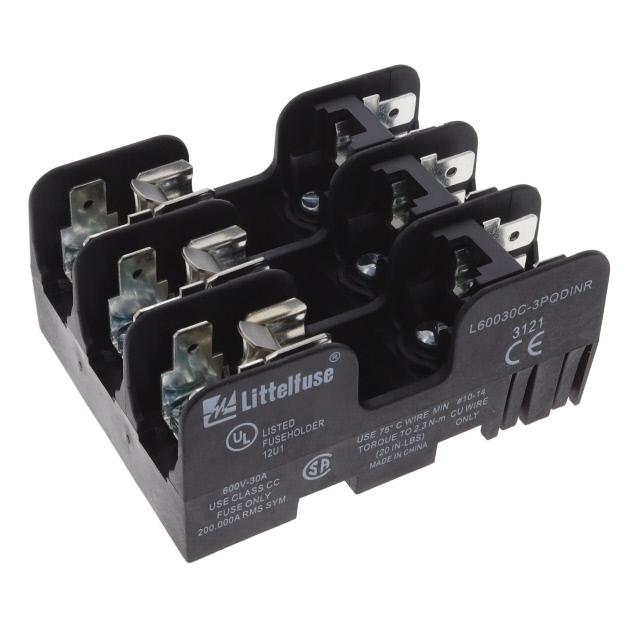 This is manufactured by Littelfuse Inc.. The manufacturer part number is L60030C3PQDINR. It is assigned with possible HTSUS value of 8538.90.8180. The product is rohs3 compliant. Moreover, it has screw terminal, pressure plate, quick connect terminal style. In addition, it is reach unaffected. The product is suitable for use with 5ag, 13/32" x 1-1/2" (midget). It is shipped in box package . A fuse with a 0.394" dia x 1.496" l (10mm x 38mm) size. Furthermore, the product is galvanized with excellent tin contact finishing. Its typical moisture sensitivity level is 1 (unlimited). It has a long 9 weeks standard lead time. It integrates 3 circuits. Additionally, the product's output is 30 a. The product is available in din rail configuration. block Fuse holder type. The product l600, is a highly preferred choice for users. It integrates a cartridge fuse type. It carries a 600v of voltage. The product is designated with the ear99 code number. The product is made from sturdy copper alloy materials.