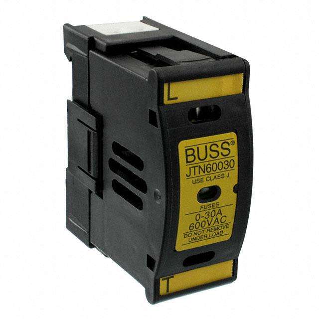 This is manufactured by Eaton - Bussmann Electrical Division. The manufacturer part number is JTN60030. It is assigned with possible HTSUS value of 8538.90.8180. The product is rohs3 compliant. Moreover, it has quick connect terminal style. In addition, it is reach unaffected. The product is suitable for use with class j fuses. Furthermore, the product is galvanized with excellent tin contact finishing. Its typical moisture sensitivity level is not applicable. It has a long 7 weeks standard lead time. It integrates 1 circuits. Additionally, the product's output is 30 a. The product is available in din rail configuration. block Fuse holder type. In addition, bulk is the available packaging type of the product. It integrates a cartridge fuse type. It carries a 600v of voltage. The product is designated with the ear99 code number. The product is made from sturdy copper alloy materials.