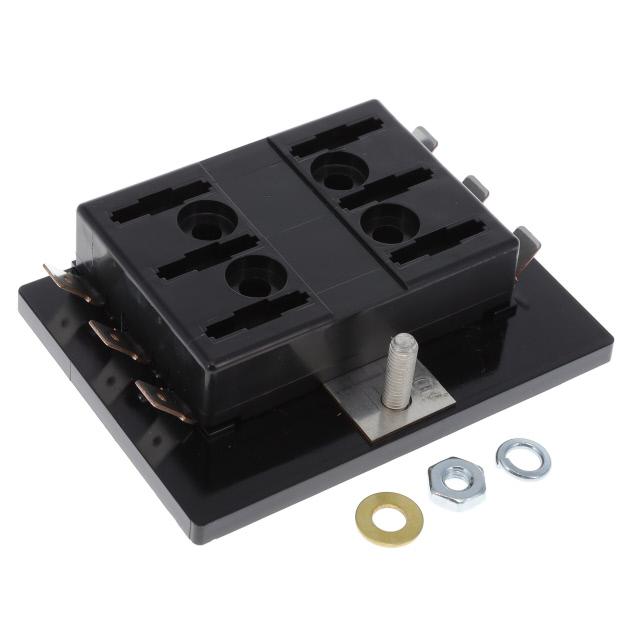 This is manufactured by Littelfuse Inc.. The manufacturer part number is 46377-6-BX. It is assigned with possible HTSUS value of 8538.90.8180. The product is rohs3 compliant. Moreover, it has quick connect - 0.250" (6.3mm) terminal style. The product is suitable for use with atc, ato. It is shipped in box package . Its typical moisture sensitivity level is 1 (unlimited). It integrates 6 circuits. Additionally, the product's output is 150 a. The product has a horizontal and vertical orientation. The product is available in chassis mount configuration. block Fuse holder type. It integrates a blade fuse type. It carries a 24v of voltage. The product is designated with the ear99 code number.