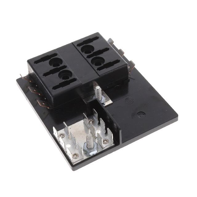 This is manufactured by Littelfuse Inc.. The manufacturer part number is 46379-6-BX. It is assigned with possible HTSUS value of 8538.90.8180. The product is rohs3 compliant. Moreover, it has quick connect - 0.250" (6.3mm) terminal style. In addition, it is reach unaffected. The product is suitable for use with atc, ato. It is shipped in box package . Its typical moisture sensitivity level is 1 (unlimited). It integrates 6 circuits. Additionally, the product's output is 150 a. The product has a horizontal and vertical orientation. The product is available in chassis mount configuration. block Fuse holder type. It integrates a blade fuse type. It carries a 24v of voltage. The product is designated with the ear99 code number.