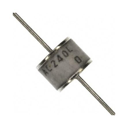 This is AC Series 800V 10kA Plug In 2 Electrode Gas Discharge Tube manufactured by Littelfuse. The manufacturer part number is AC240L. The given dimensions of the product include 8 (dia.) x 6mm. The product is available in plug in configuration. Additionally, the product has 800v DC spark over voltage . The product ac, is a highly preferred choice for users. In addition, the height is 8mm. It provides a <1.5pf of capacitance value. Its accurate length is 6mm. Whereas, the minimum operating temperature of the product is -40°c. It has a maximum 240 v voltage rating. It has 800v impulse spark over voltage . It can withstand a maximum 10ka surge current . It has a maximum operating temperature of +90°c. Its suppressor is of 2 electrode gas discharge tube type .