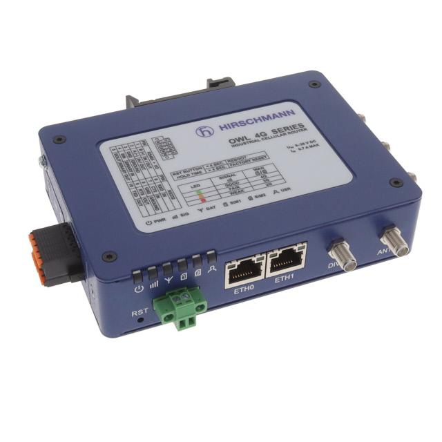 This is manufactured by Hirschmann. The manufacturer part number is OWL 4G NORTH AMERICA + WLAN. It performs basic function of router. Robust and maximum data rate speed of 150mbps. It is shipped in box package . The product is rohs3 compliant. Its typical moisture sensitivity level is 1 (unlimited). The product is widely employed in general purpose. Supplied with 600mhz, 700mhz, 850mhz, 900mhz, 1.7ghz, 1.9ghz of frequency. Moreover, it corresponds to owl 4g, a base product number of the product. A bespoke product is ethernet, rj-45, rs-232, rs-485 interface. It has wcdma, lte modulation/protocol.