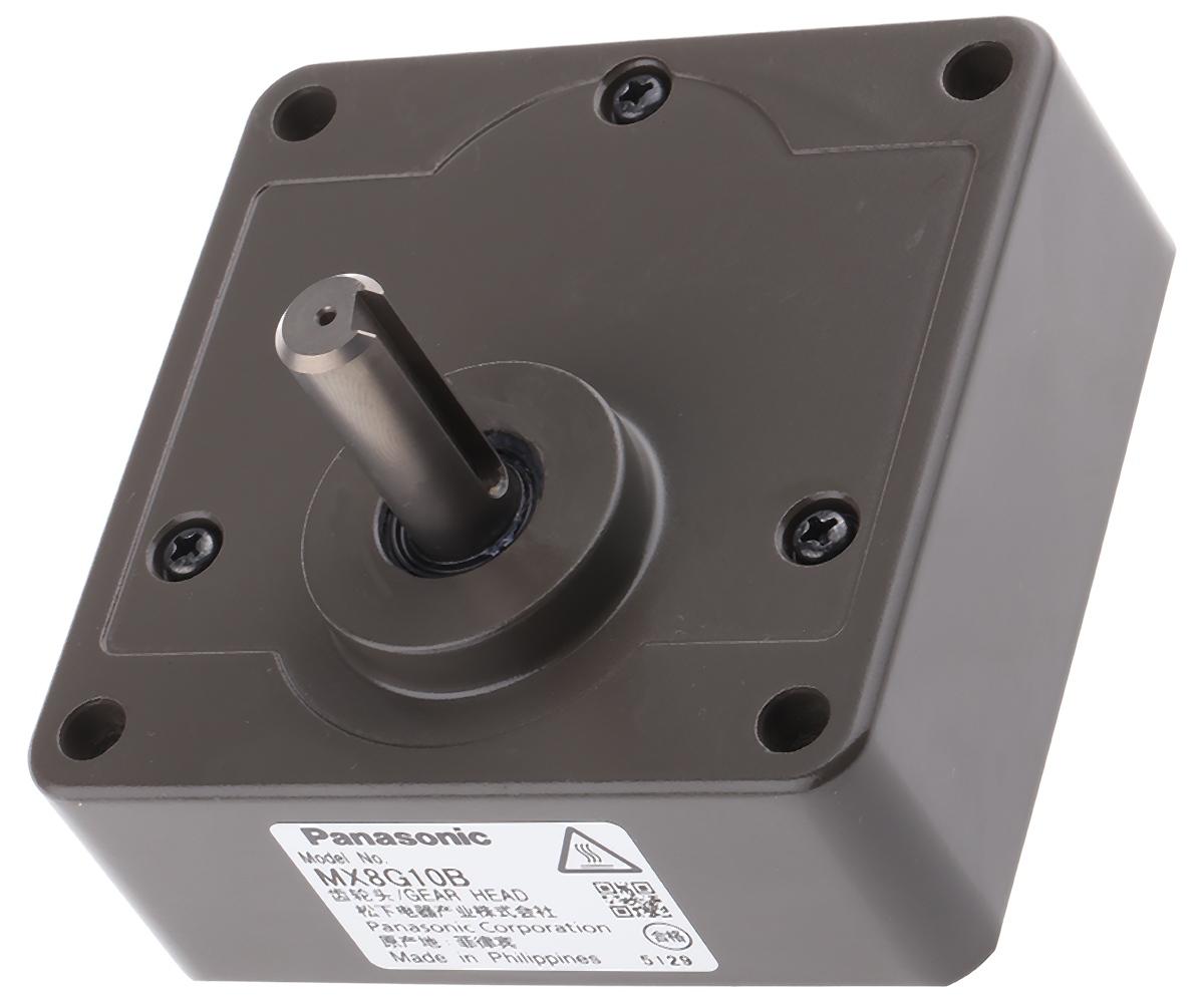 This is Spur Gearbox 10:1 Gear Ratio 1.27 Nm Maximum Torque 135rpm Maximum Speed manufactured by Panasonic. The manufacturer part number is MX8G10B. Its maximum output torque is about 1.27 nm . The diameter of the shaft is 10mm. Its gear ratio is 10:1 . It includes spur type gearbox . It has a maximum 135rpm speed . It has an overall length of 80mm. Similarly, the product has 30mm of overall depth. Feature 25 w of power rating. It has an overall width of 80mm.