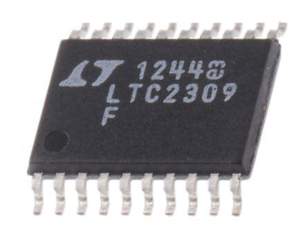 This is 12-bit Serial ADC 8-channel Differential Single Ended Input 20-Pin TSSOP manufactured by Linear Technology. The manufacturer part number is LTC2309CF#PBF. It contains 8 ADCs . It contains 8 input channels . Its integral nonlinearity error is ±1lsb . Additionally, the product has a/an serial (i2c) type digital interface . The given dimensions of the product include 6.6 x 4.5 x 0.95mm. The product is available in surface mount configuration. The input signal is a kind of differential, single ended signal. It is a type of single power supply. Whereas, the minimum operating temperature of the product is 0 °c. It has a typical single supply voltage of 5 v. In addition, the height is 0.95mm. Furthermore, the product is 4.5mm wide. Its accurate length is 6.6mm. The package is a sort of tssop. The product has been designed as sar. It carries voltage input type. It has about 14ksps sampling rate . It has a maximum operating temperature of +70 °c. Features 12-bit resolution. It contains 20 pins.