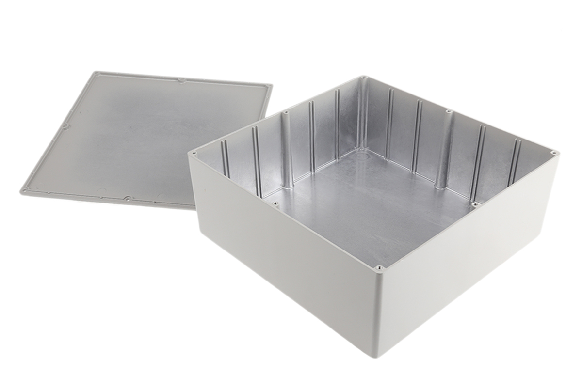 This is Aluminium Enclosure Shielded 250 x 250 x 100mm manufactured by RS Pro. The manufacturer part number is 517-3557. Its RAL code is ral 7038 . Flange Options - no. Shielding Options yes. It has a decent grey colour. Its external length includes 250 mm. The product's body is nicely designed from die cast aluminium materials. The lid has a classical grey colour. While its external height is 100 mm. The product is 250 mm wide. Features 250 x 250 x 100mm external caliber.