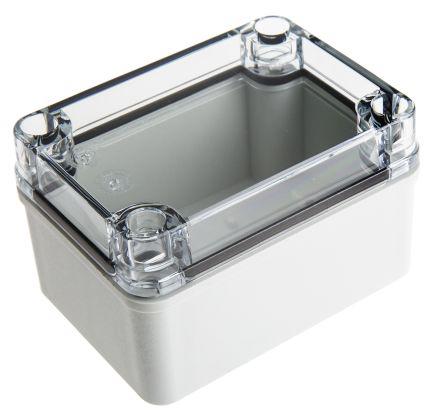 This is Polycarbonate Enclosure IP66 IP67 120 x 80 x 55mm manufactured by Fibox. The manufacturer part number is PCT081206. It is IP rated with ip66, ip67. Shielding Options no. It has a decent grey, transparent colour. Its external length includes 120 mm. The product's body is nicely designed from polycarbonate materials. Features 120 x 80 x 55mm external caliber. While its external height is 55 mm. The product is 80 mm wide.