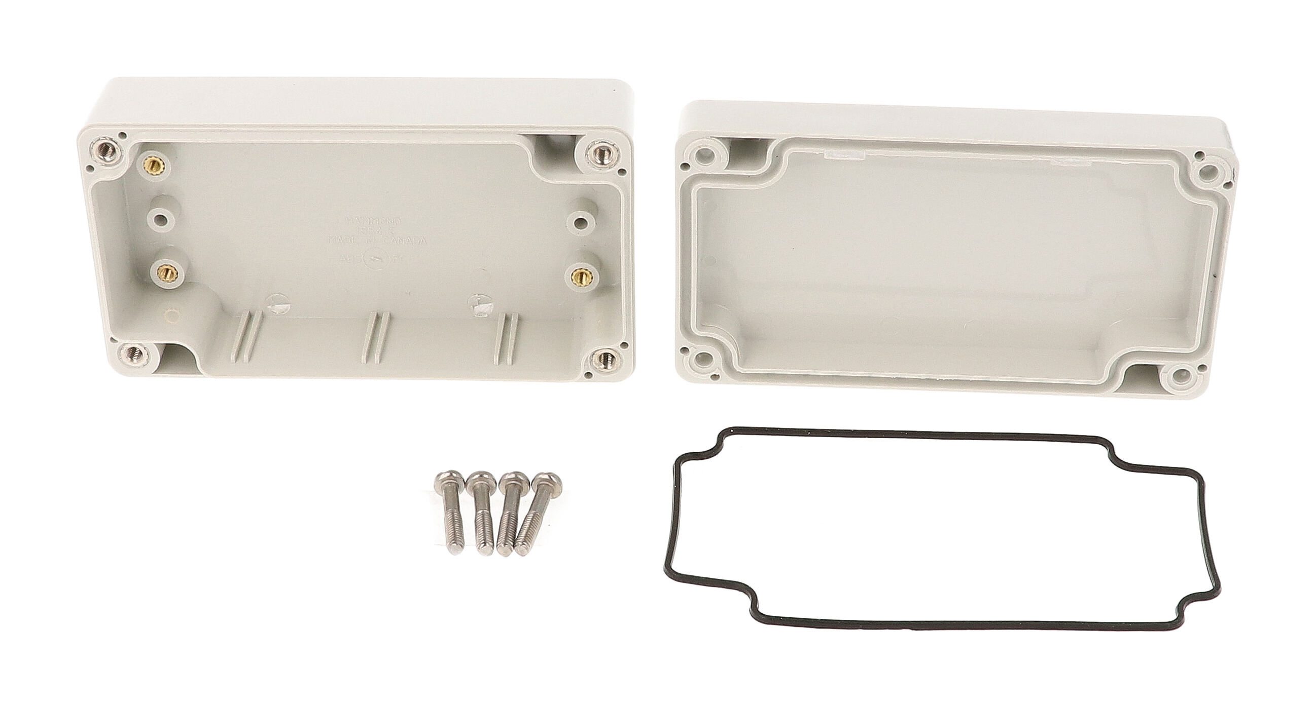 This is 1554 ABS Enclosure IP66 120 x 65 x 40.5mm manufactured by Hammond. The manufacturer part number is 1554CGY. Its RAL code is ral 7035 . Flange Options - no. Its gasket is made using silicone material . The typical product's weight is 115g. It is IP rated with ip66. Shielding Options no. The product 1554, is a highly preferred choice for users. It has a decent grey colour. The product's body is nicely designed from abs materials. Its external length includes 120 mm. It features 1554 range. The lid has a classical grey colour. Features 120 x 65 x 40.5mm external caliber. While its external height is 40.5 mm. The product is 65 mm wide. Additionally, it is explosion proof no . It has a transparent door no .