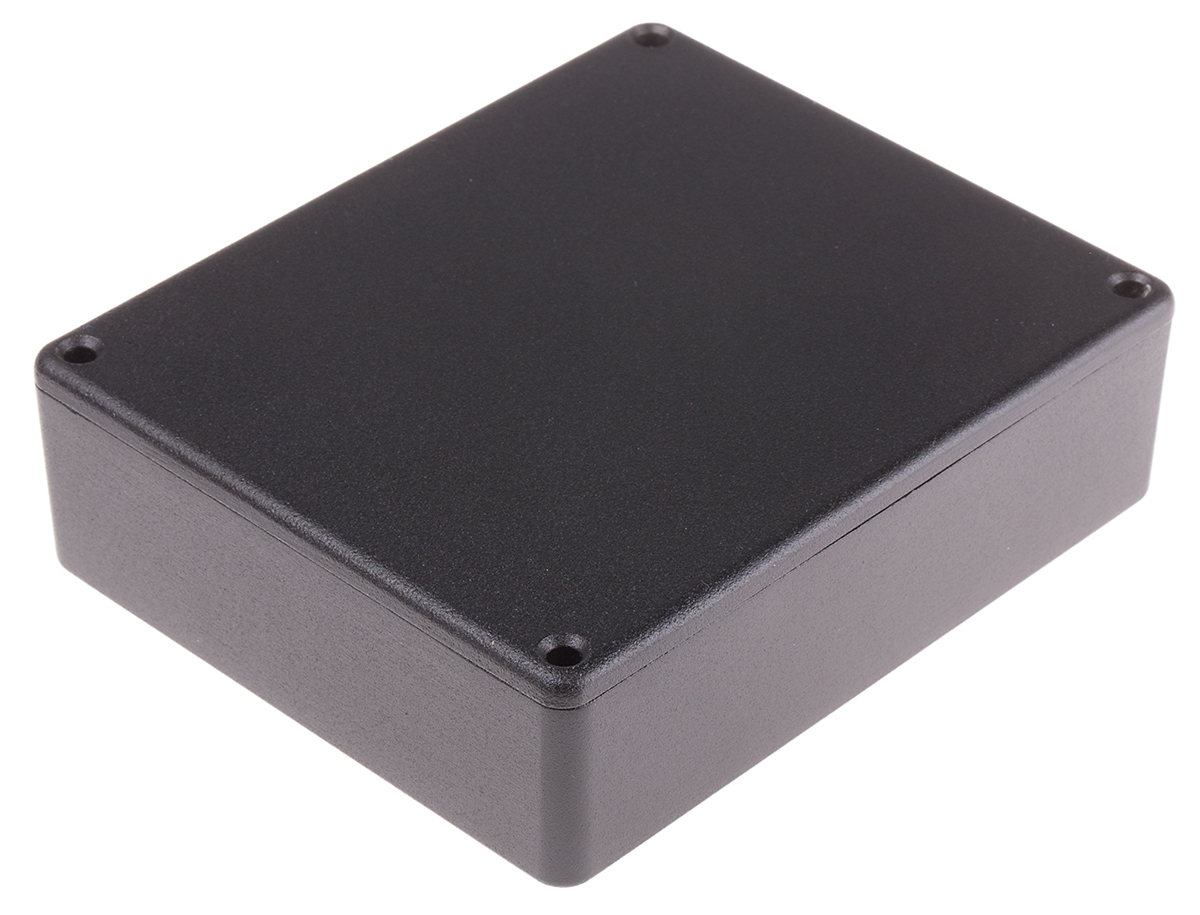 This is Aluminium Enclosure Shielded 119.9 x 100 x 35.7mm manufactured by RS Pro. The manufacturer part number is 517-4005. Flange Options - no. Shielding Options yes. It has a decent black colour. Its external length includes 119.9 mm. The product's body is nicely designed from die cast aluminium materials. The lid has a classical black colour. Features 119.9 x 100 x 35.7mm external caliber. While its external height is 35.7 mm. The product is 100 mm wide.