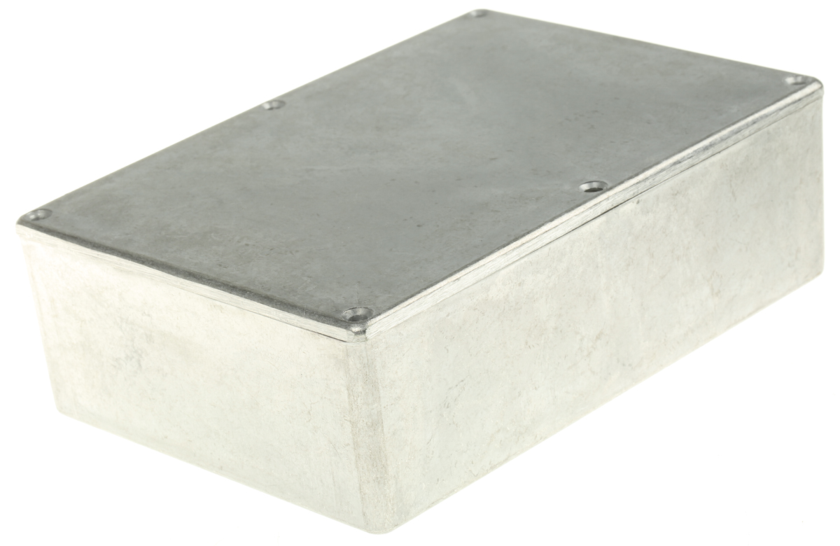 This is Aluminium Enclosure IP66 Shielded 171.9 x 120.9 x 55mm manufactured by RS Pro. The manufacturer part number is 517-3478. Flange Options - no. Its gasket is made using neoprene material . It is IP rated with ip66. Shielding Options yes. It has a decent silver colour. Its external length includes 171.9 mm. The product's body is nicely designed from die cast aluminium materials. The lid has a classical silver colour. Features 171.9 x 120.9 x 55mm external caliber. While its external height is 55 mm. The product is 120.9 mm wide.