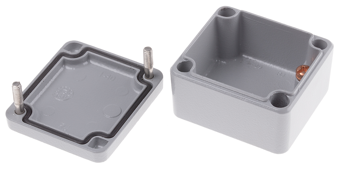 This is Aluminium Enclosure IP66 50 x 45 x 30mm manufactured by RS Pro. The manufacturer part number is 760-8973. Flange Options - no. Its gasket is made using neoprene material . It is IP rated with ip66. Shielding Options no. It has a decent grey colour. Its external length includes 50 mm. The product's body is nicely designed from die cast aluminium materials. The lid has a classical grey colour. Features 50 x 45 x 30mm external caliber. While its external height is 30 mm. The product is 45 mm wide.