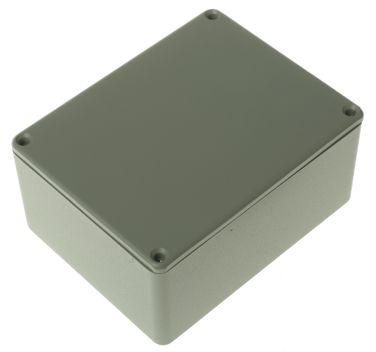 This is Aluminium Enclosure Shielded 114.7 x 89.7 x 55.1mm manufactured by RS Pro. The manufacturer part number is 517-3816. Flange Options - no. Shielding Options yes. It has a decent grey colour. Its external length includes 114.7 mm. The product's body is nicely designed from die cast aluminium materials. The lid has a classical grey colour. While its external height is 55.1 mm. The product is 89.7 mm wide. Features 114.7 x 89.7 x 55.1mm external caliber.