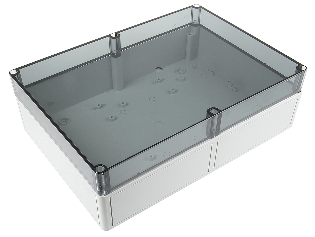 This is TK PS Plastic Enclosure IP66 360 x 254 x 111mm manufactured by Spelsberg. The manufacturer part number is 11101201. It is IP rated with ip66. Shielding Options no. The product tk ps, is a highly preferred choice for users. It has a decent grey colour. Its external length includes 360 mm. The product's body is nicely designed from polystyrene materials. The lid has a classical transparent colour. Features 360 x 254 x 111mm external caliber. While its external height is 111 mm. The product is 254 mm wide.