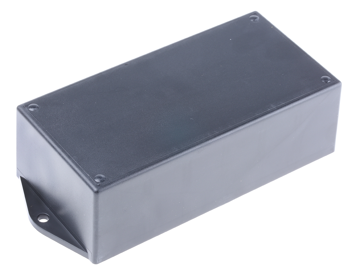 This is ABS Enclosure Flanged 175.26 x 76.2 x 46.99mm manufactured by RS Pro. The manufacturer part number is 287-6461. Flange Options - yes. Shielding Options no. It has a decent black colour. Its external length includes 175.3 mm. The product's body is nicely designed from abs materials. The lid has a classical black colour. Features 175.26 x 76.2 x 46.99mm external caliber. While its external height is 47 mm. The product is 76.2 mm wide.