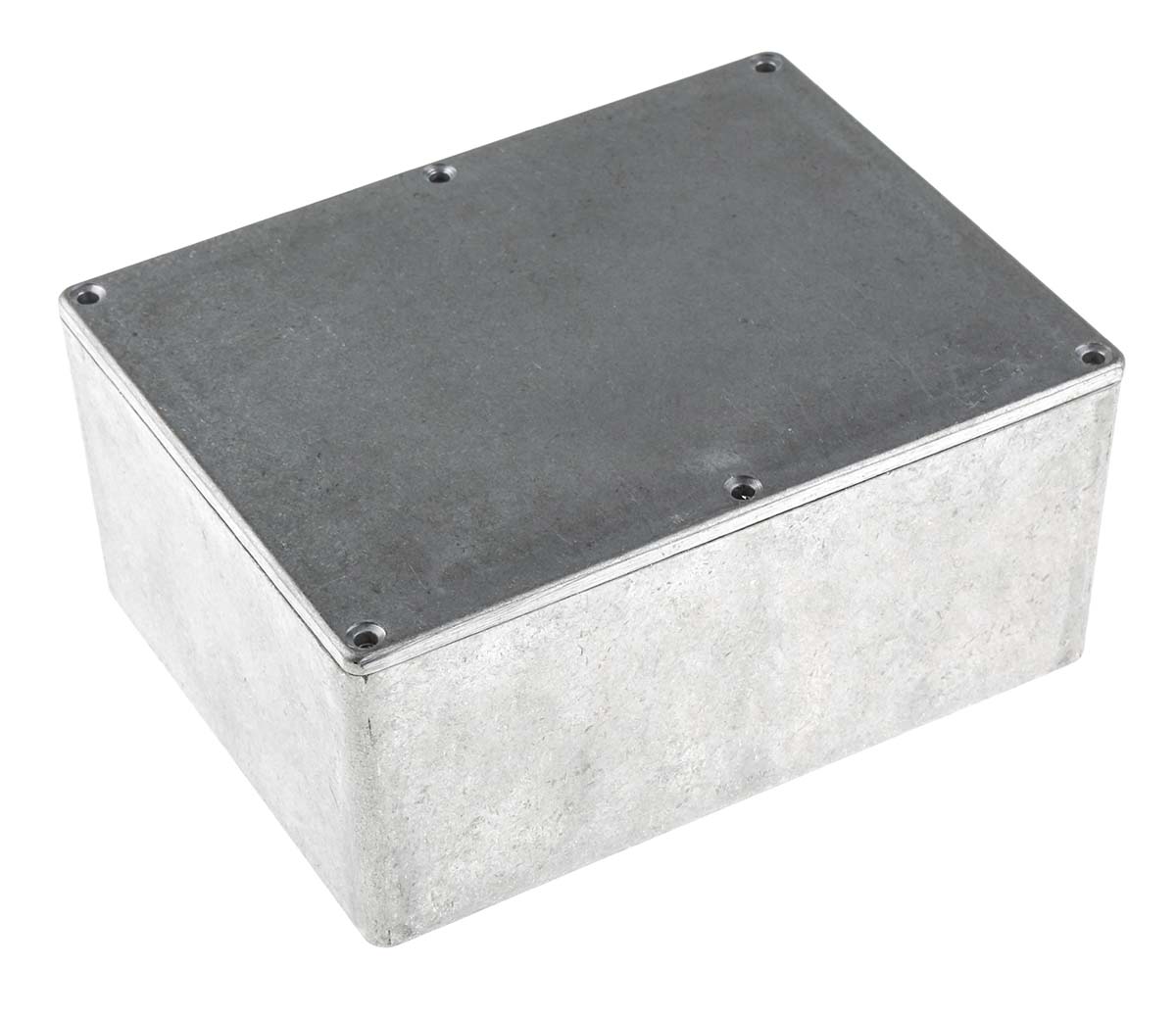 This is Aluminium Enclosure Shielded 165.8 x 127.3 x 76.3mm manufactured by RS Pro. The manufacturer part number is 517-3383. Flange Options - no. Shielding Options yes. It has a decent silver colour. Its external length includes 165.8 mm. The product's body is nicely designed from die cast aluminium materials. The lid has a classical silver colour. While its external height is 76.3 mm. The product is 127.3 mm wide. Features 165.8 x 127.3 x 76.3mm external caliber.