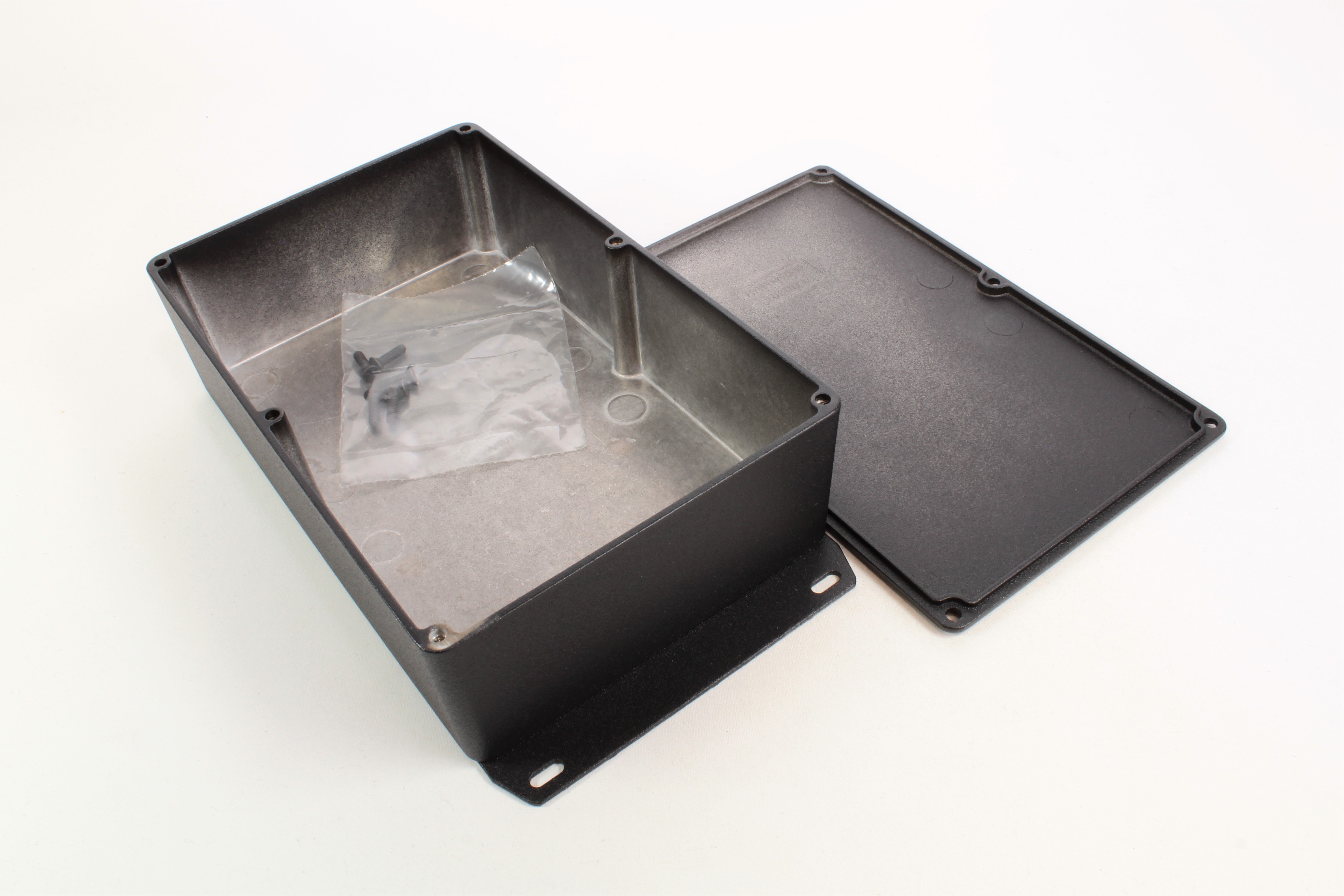 This is Enclosure; Diecast Aluminum Alloy; 2.05 in.; 4.7 in.; Black; 0.08 in. manufactured by Hammond. The manufacturer part number is 1590DFBK. Flange Options - yes. It is IP rated with ip54. Shielding Options yes. The product 1590, is a highly preferred choice for users. Its external length includes 188 mm. The product's body is nicely designed from die cast aluminium materials. Features 188 x 188 x 56mm external caliber. While its external height is 56 mm. The product is 120 mm wide.