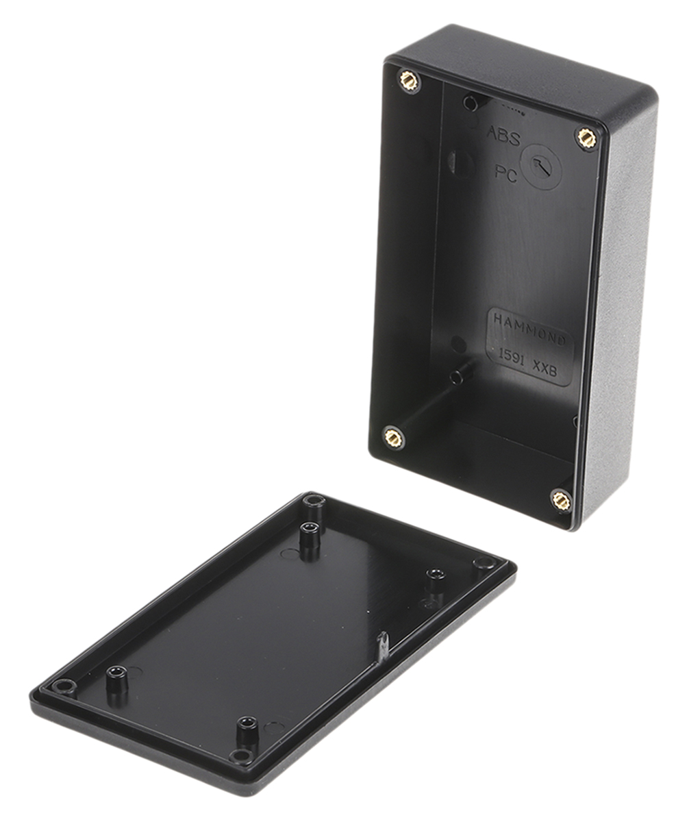 This is 1591 ABS Enclosure IP54 113 x 63 x 28mm manufactured by Hammond. The manufacturer part number is 1591XXBBK. Its RAL code is ral 9005 . Flange Options - no. The typical product's weight is 65g. It is IP rated with ip54. Shielding Options no. The product 1591, is a highly preferred choice for users. It has a decent black colour. The product's body is nicely designed from flame retardant abs materials. Its external length includes 113 mm. It features 1591 range. The lid has a classical black colour. It has a transparent door no . Features 113 x 63 x 28mm external caliber. While its external height is 28 mm. It contains 0 knockouts . The product is 63 mm wide. Additionally, it is explosion proof no .