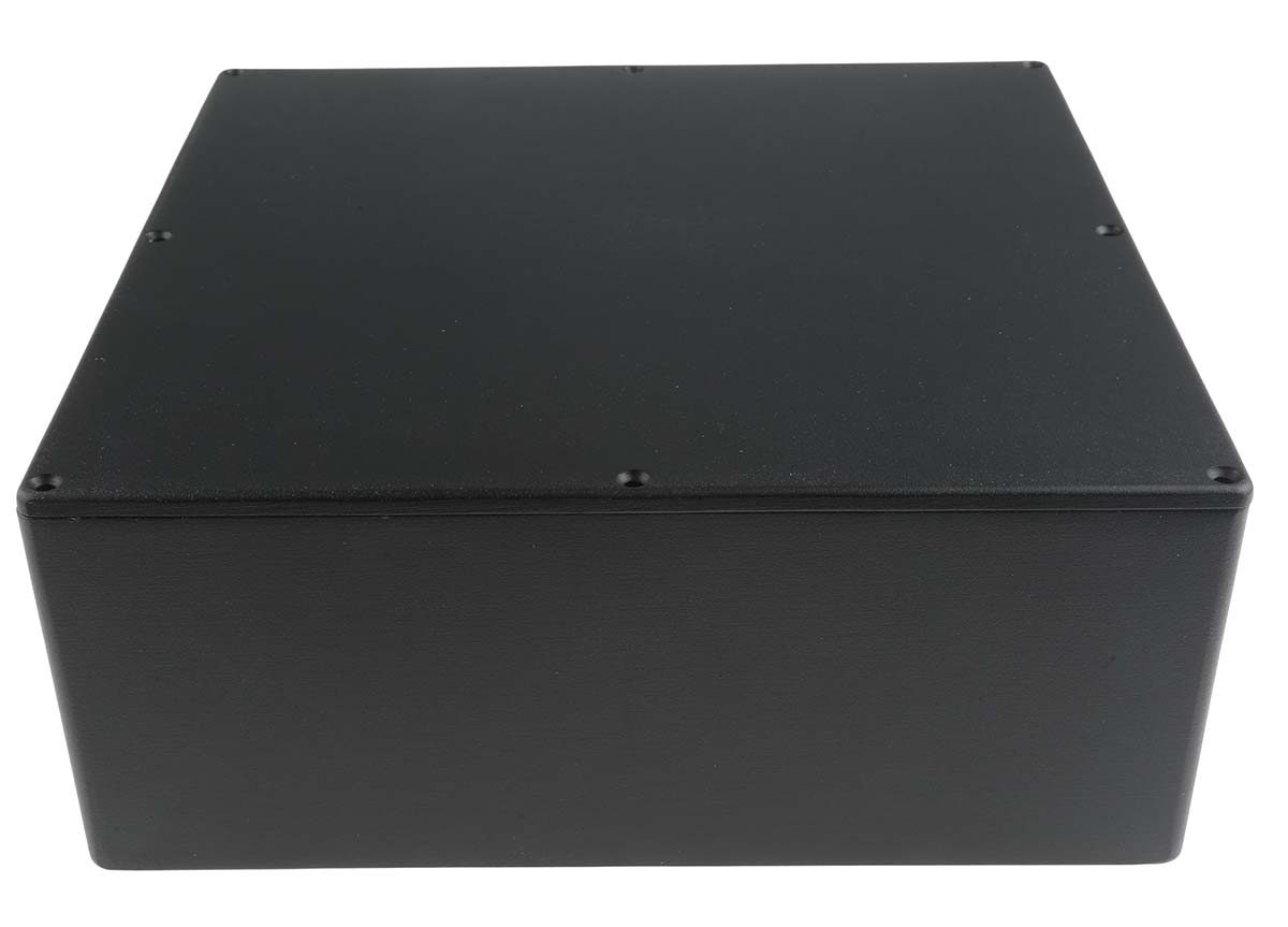 This is Aluminium Enclosure Shielded 250 x 250 x 100mm manufactured by RS Pro. The manufacturer part number is 517-4011. Its RAL code is ral 9005 . Flange Options - no. Shielding Options yes. It has a decent black colour. Its external length includes 250 mm. The product's body is nicely designed from die cast aluminium materials. The lid has a classical black colour. Features 250 x 250 x 100mm external caliber. While its external height is 100 mm. The product is 250 mm wide.