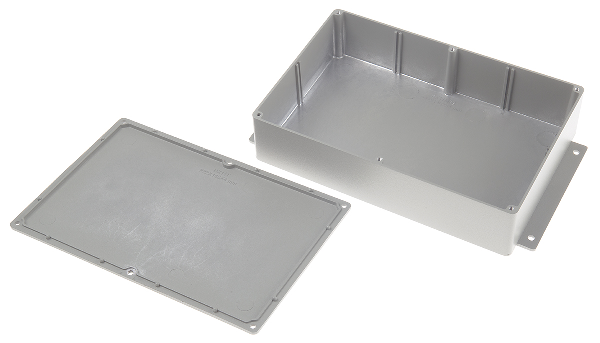 This is Aluminium Enclosure IP66 Shielded Flanged 252 x 146.1 x 55.5mm manufactured by RS Pro. The manufacturer part number is 621-5078. Flange Options - yes. Its gasket is made using neoprene material . It is IP rated with ip66. Shielding Options yes. It has a decent grey colour. Its external length includes 252 mm. The product's body is nicely designed from die cast aluminium materials. The lid has a classical grey colour. Features 252 x 146.1 x 55.5mm external caliber. While its external height is 55.5 mm. The product is 146.1 mm wide.
