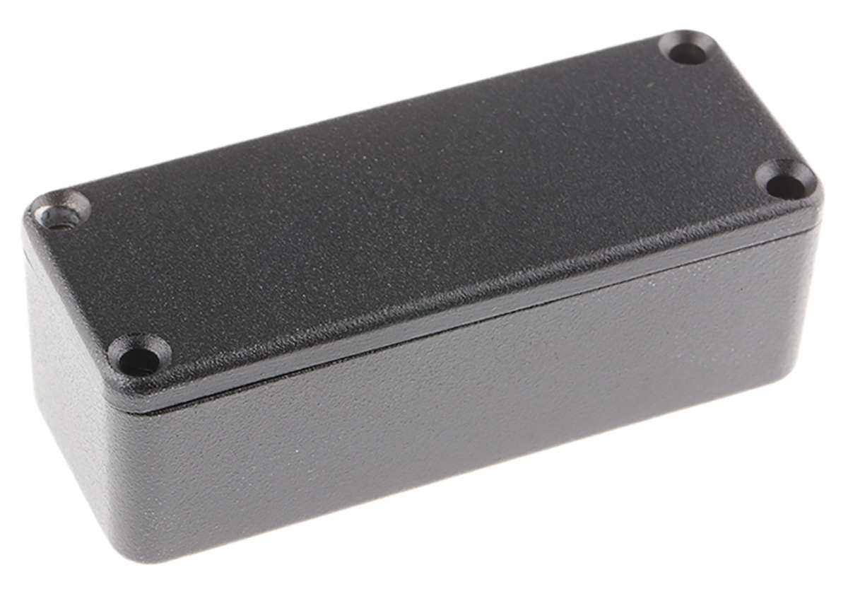 This is Aluminium Enclosure Shielded 89.1 x 35 x 30.3mm manufactured by RS Pro. The manufacturer part number is 517-3945. Its RAL code is ral 9005 . Flange Options - no. Shielding Options yes. It has a decent black colour. Its external length includes 89.1 mm. The product's body is nicely designed from die cast aluminium materials. The lid has a classical black colour. Features 89.1 x 35 x 30.3mm external caliber. While its external height is 30.3 mm. The product is 35 mm wide.
