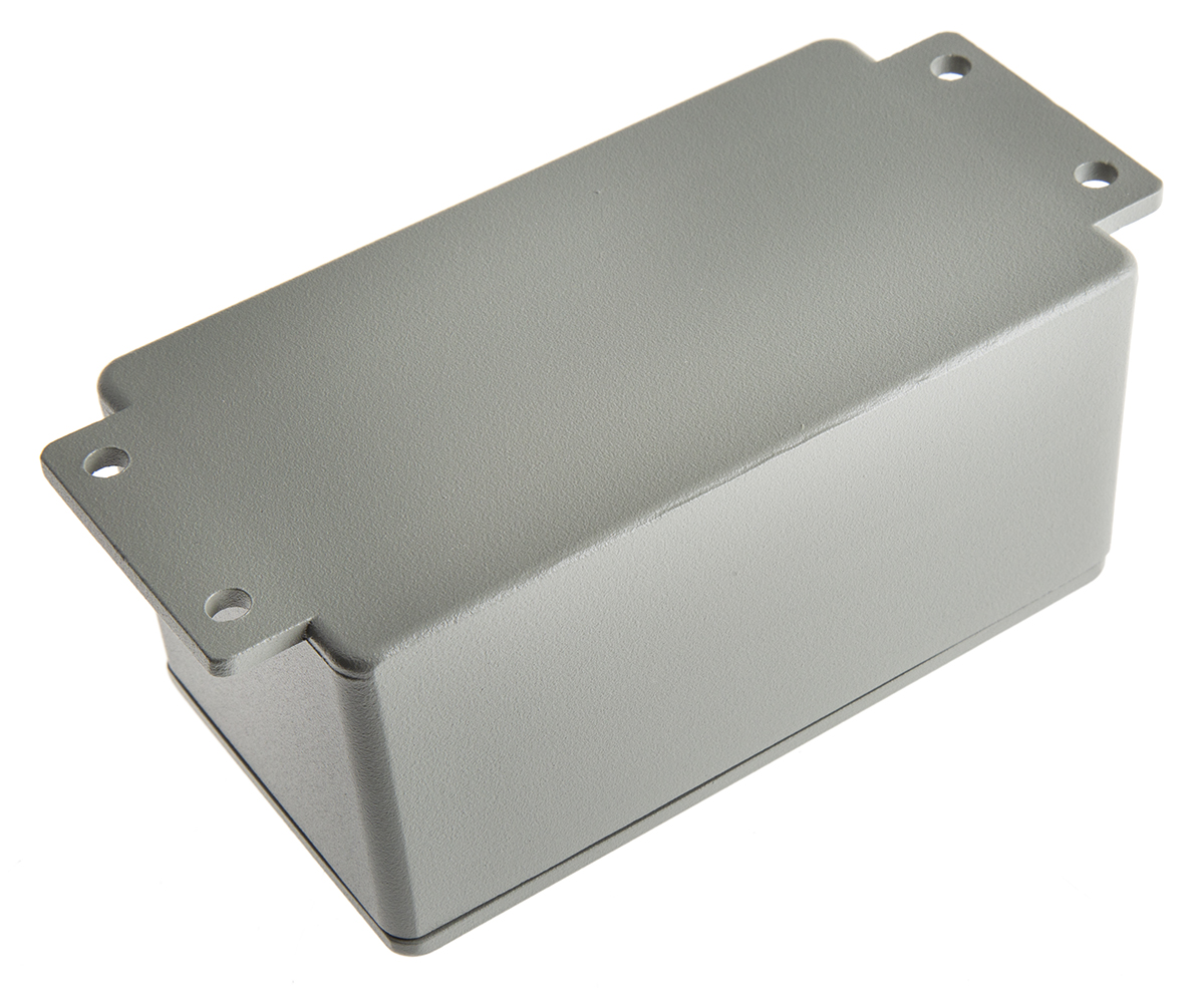 This is Aluminium Enclosure IP66 Shielded Flanged 139.6 x 63.8 x 55mm manufactured by RS Pro. The manufacturer part number is 621-5062. Flange Options - yes. Its gasket is made using silicone material . It is IP rated with ip66. Shielding Options yes. It has a decent grey colour. Its external length includes 139.6 mm. The product's body is nicely designed from die cast aluminium materials. The lid has a classical grey colour. While its external height is 55 mm. The product is 63.8 mm wide. Features 139.6 x 63.8 x 55mm external caliber.