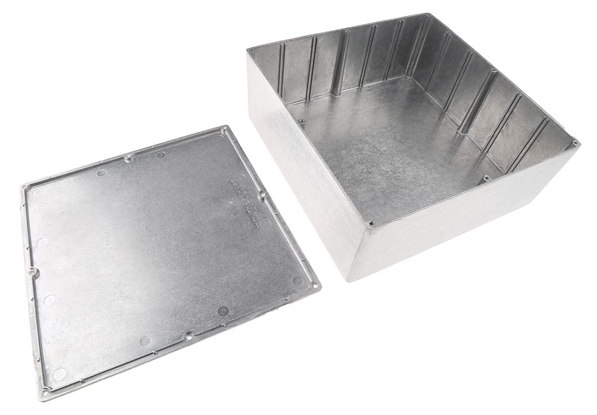 This is Aluminium Enclosure IP66 Shielded 250 x 250 x 100mm manufactured by RS Pro. The manufacturer part number is 517-3428. Flange Options - no. Its gasket is made using neoprene material . It is IP rated with ip66. Shielding Options yes. It has a decent silver colour. Its external length includes 250 mm. The product's body is nicely designed from die cast aluminium materials. The lid has a classical silver colour. While its external height is 100 mm. The product is 250 mm wide. Features 250 x 250 x 100mm external caliber.