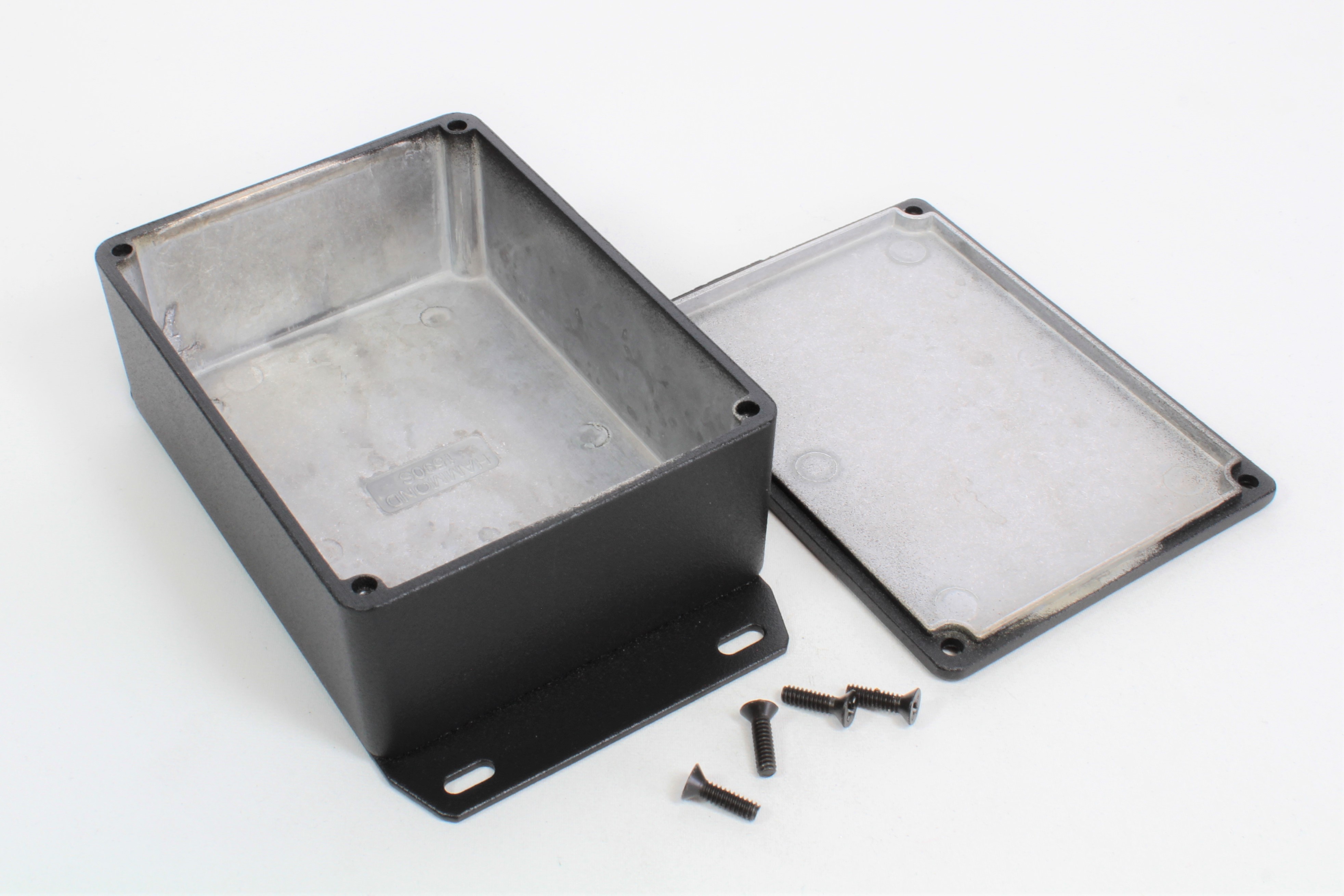 This is Enclosure; Diecast Aluminum Alloy; 1.57 in.; 3.21 in.; Black; 0.08 in. manufactured by Hammond. The manufacturer part number is 1590SFBK. Flange Options - yes. The product is 83mm wide. Furthermore, the product is shielded with shielded. It is IP rated with ip54. Its external length includes 111mm. The product 1590, is a highly preferred choice for users. It has a decent black colour. The product is certified with no hazardous area certification. The product's body is nicely designed from die cast aluminium materials. The lid has a classical black colour. Its gasket is made using silicon material . While its external height is 44mm. enclosure is a versatile product designed to provide user-defined applications.